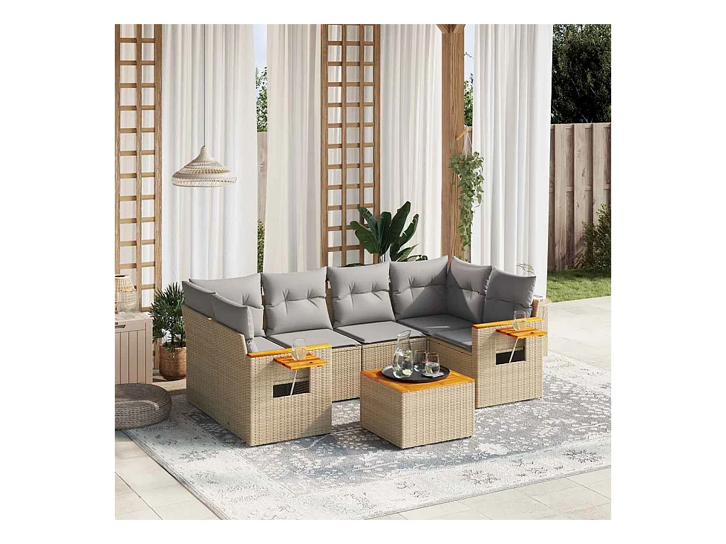 Salon de jardin avec coussins 7 pcs beige résine tressée