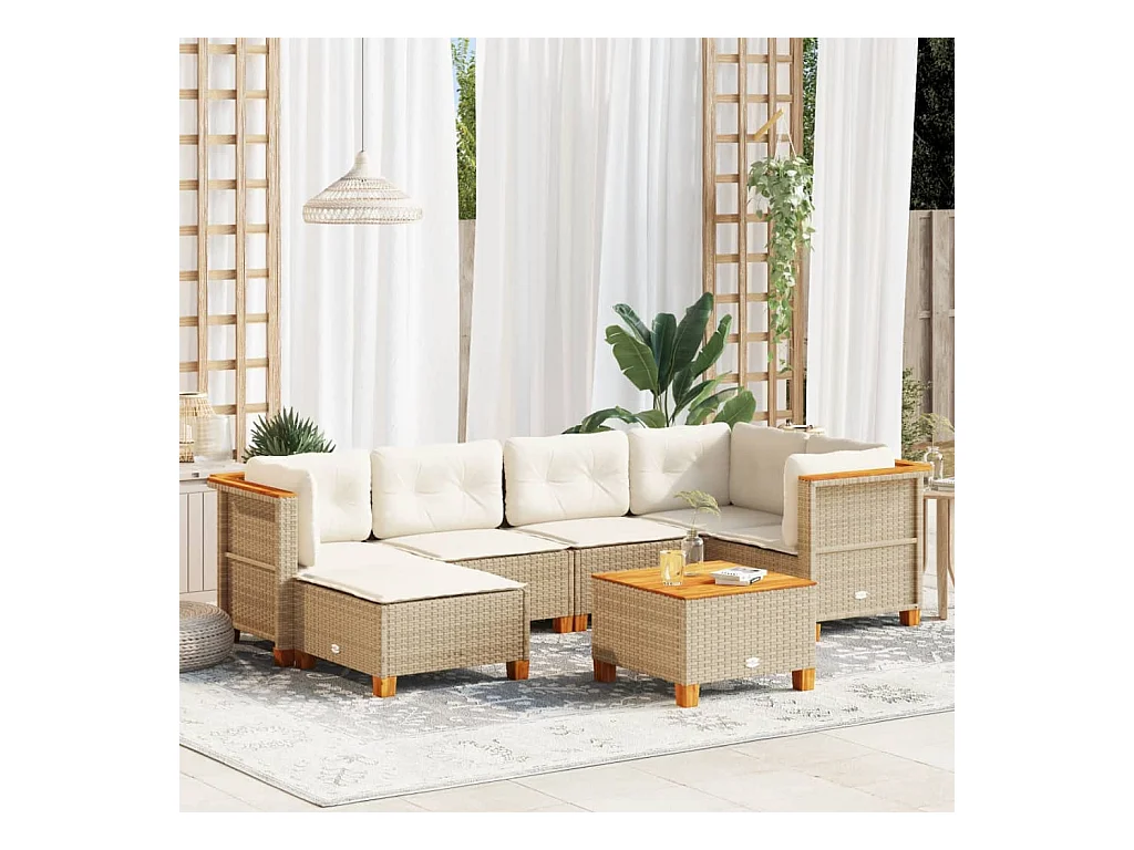 Salon de jardin avec coussins 7 pcs beige résine tressée