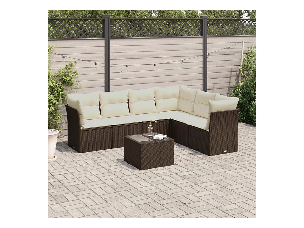 Salon de jardin avec coussins 7 pcs marron résine tressée