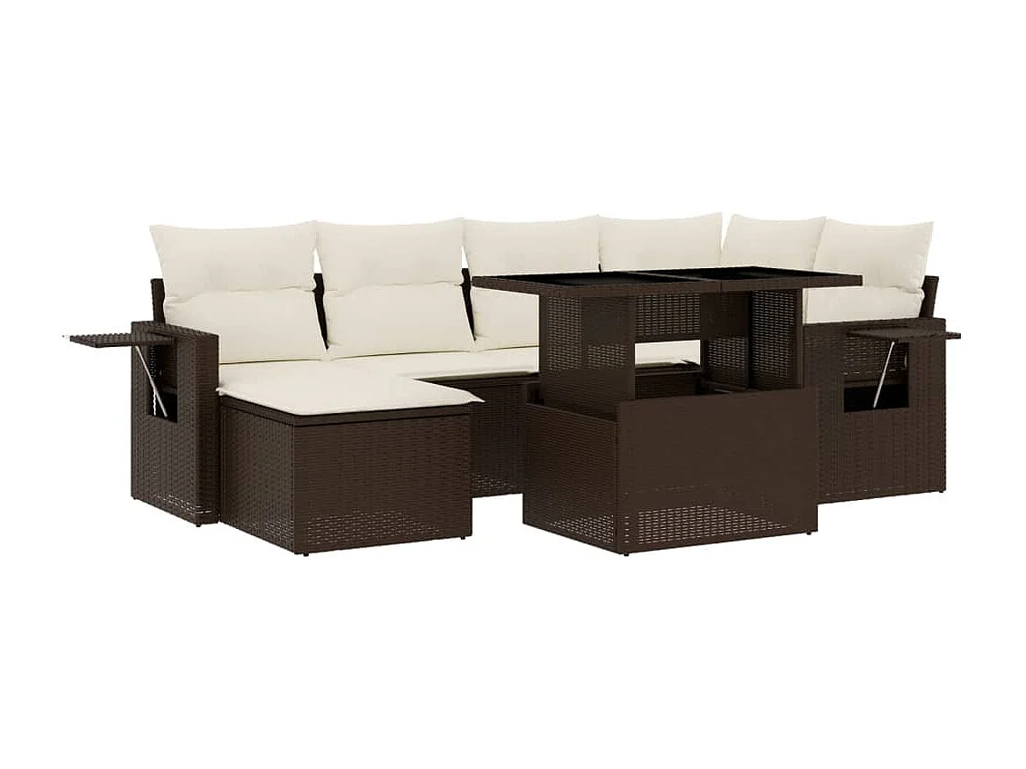 Salon de jardin avec coussins 7 pièces marron résine tressée