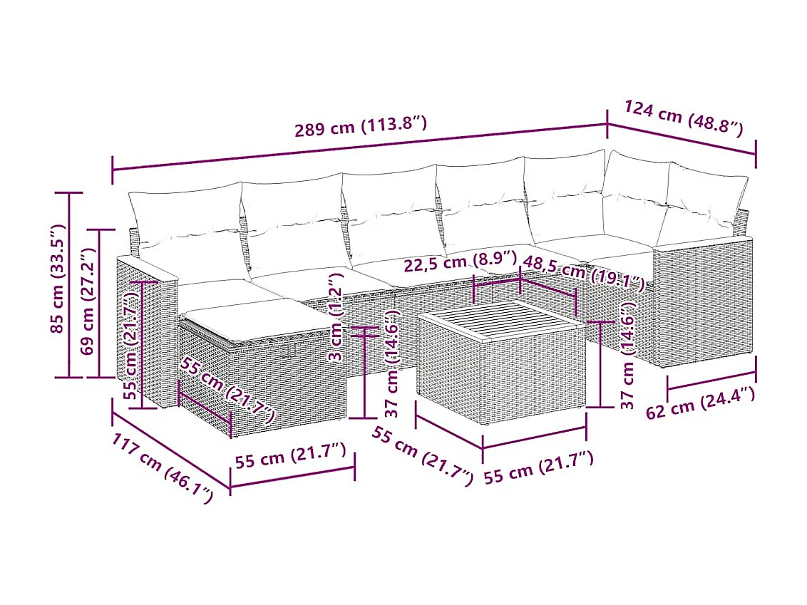 Salon de jardin avec coussins 8 pcs beige résine tressée