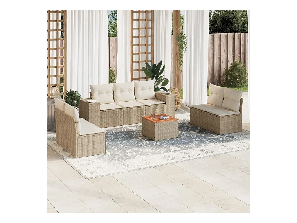 Salon de jardin avec coussins 8 pcs beige résine tressée
