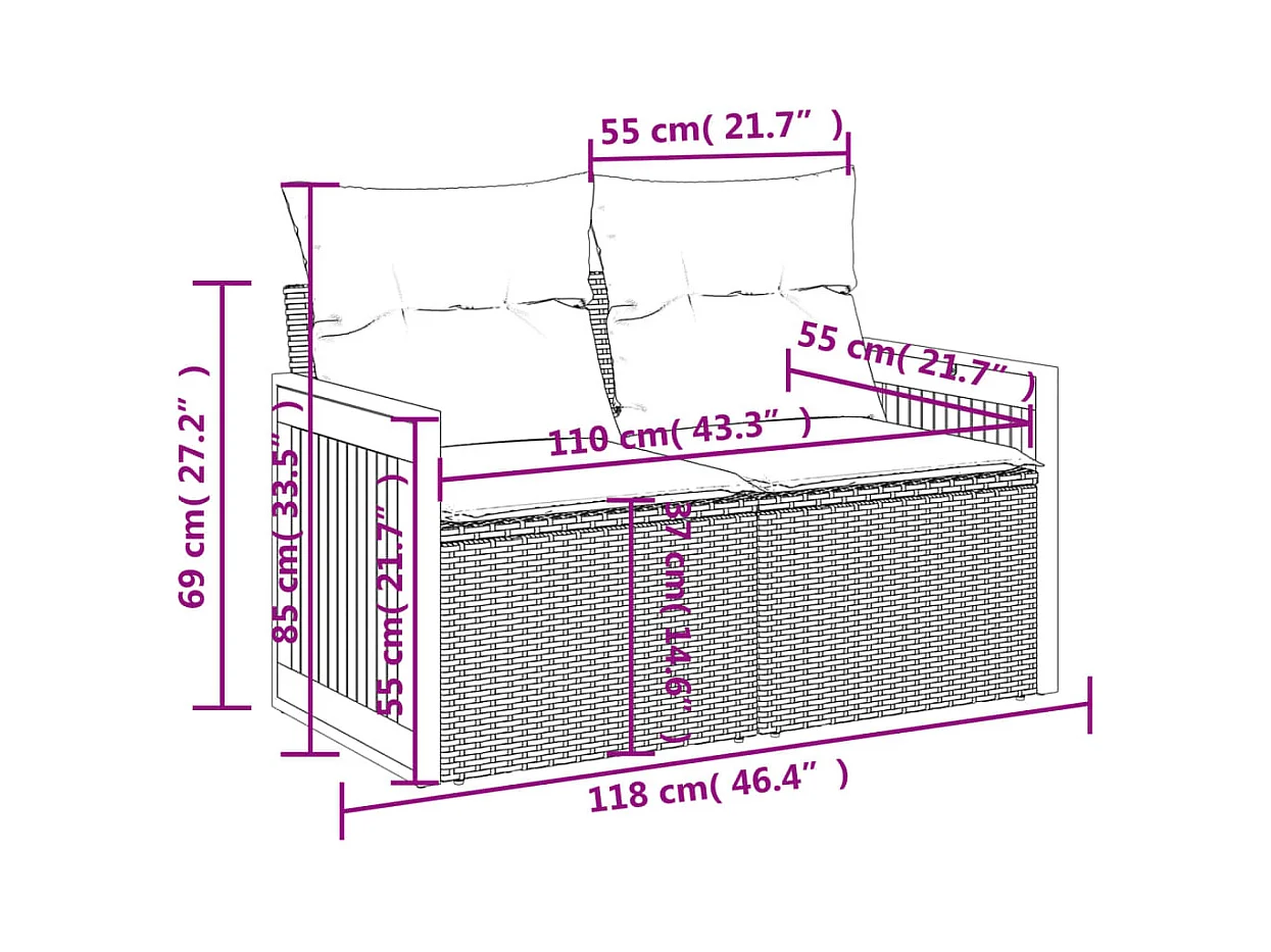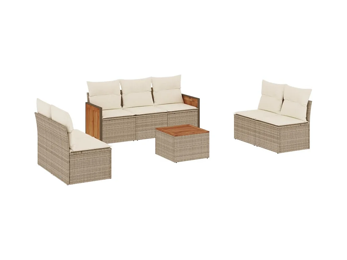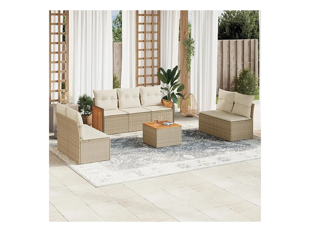 Salon de jardin avec coussins 8 pcs beige résine tressée