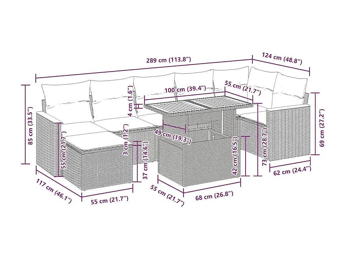 Salon de jardin avec coussins 8 pcs noir résine tressée acacia