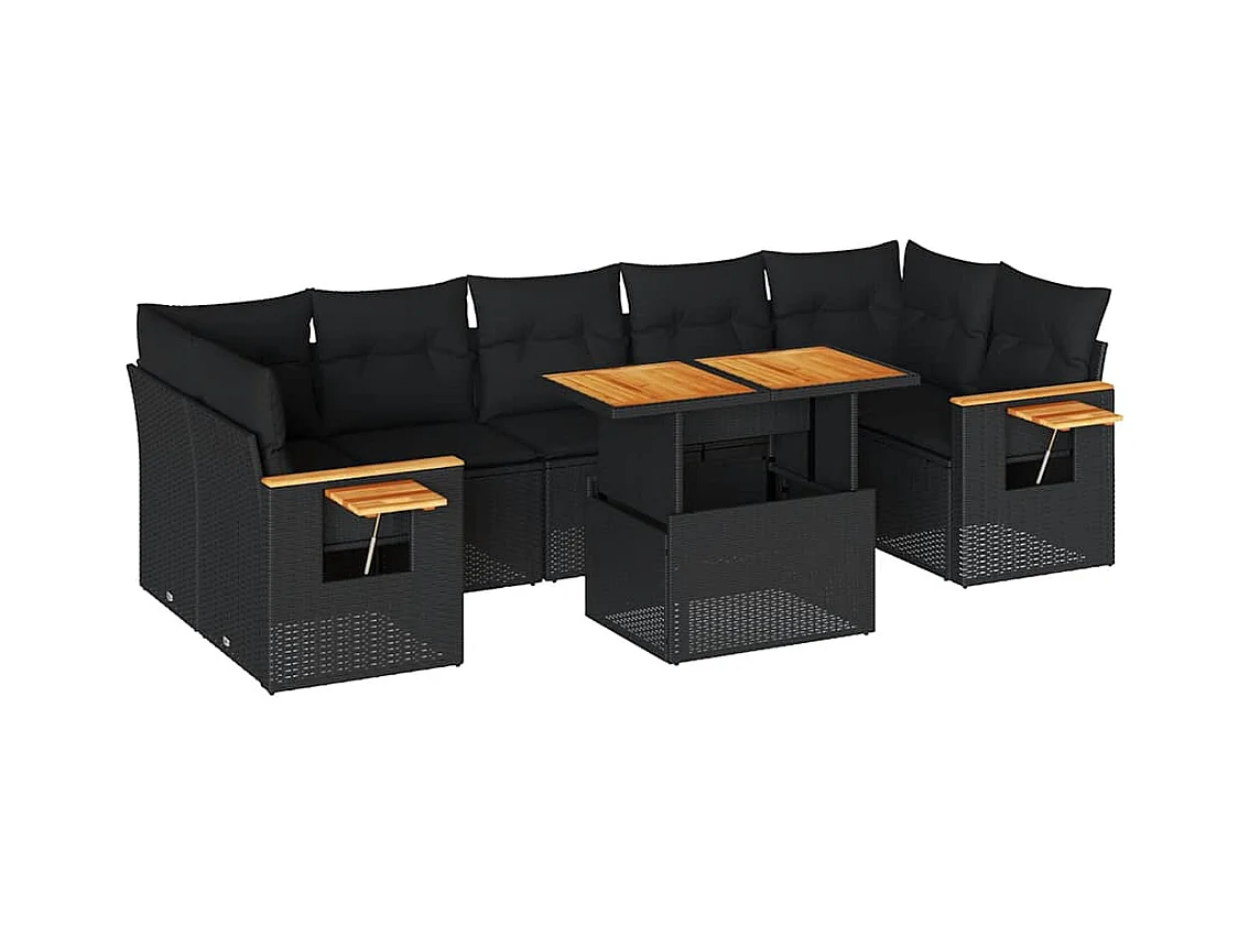 Salon de jardin avec coussins 8 pcs noir résine tressée acacia