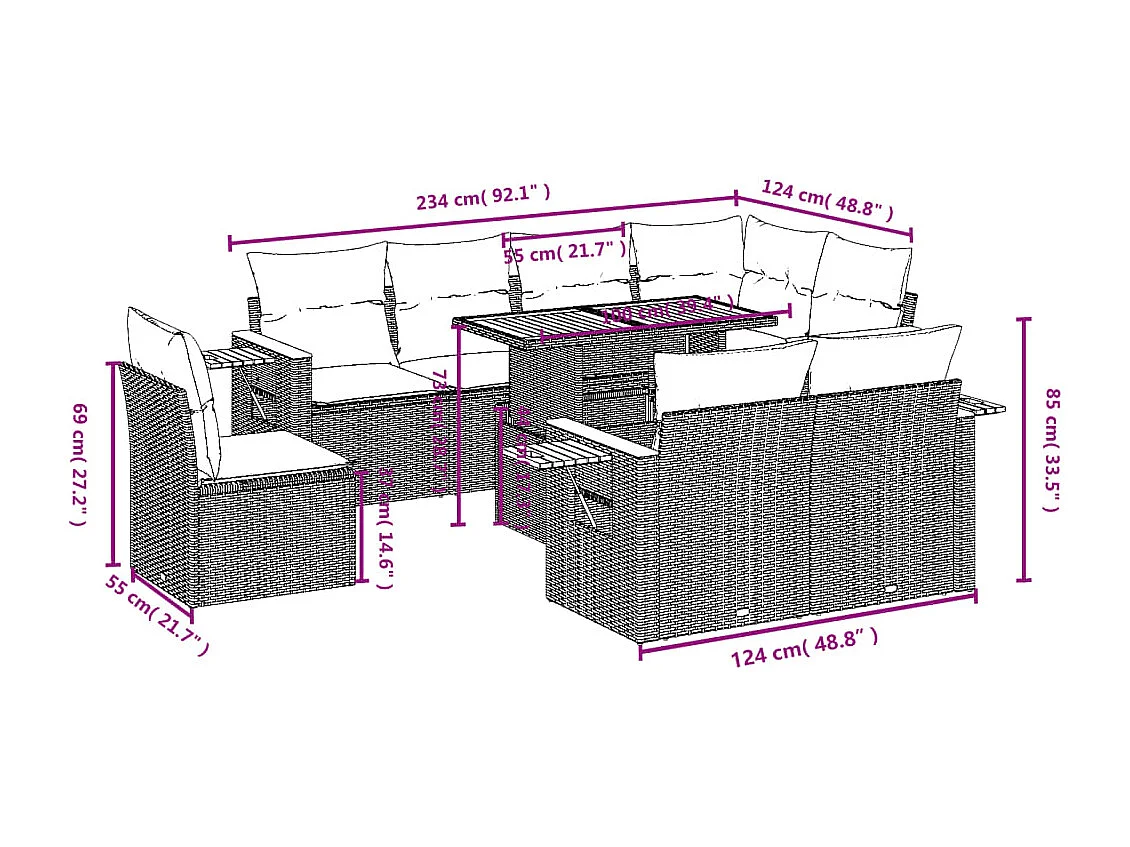 Salon de jardin avec coussins 9 pcs beige résine tressée
