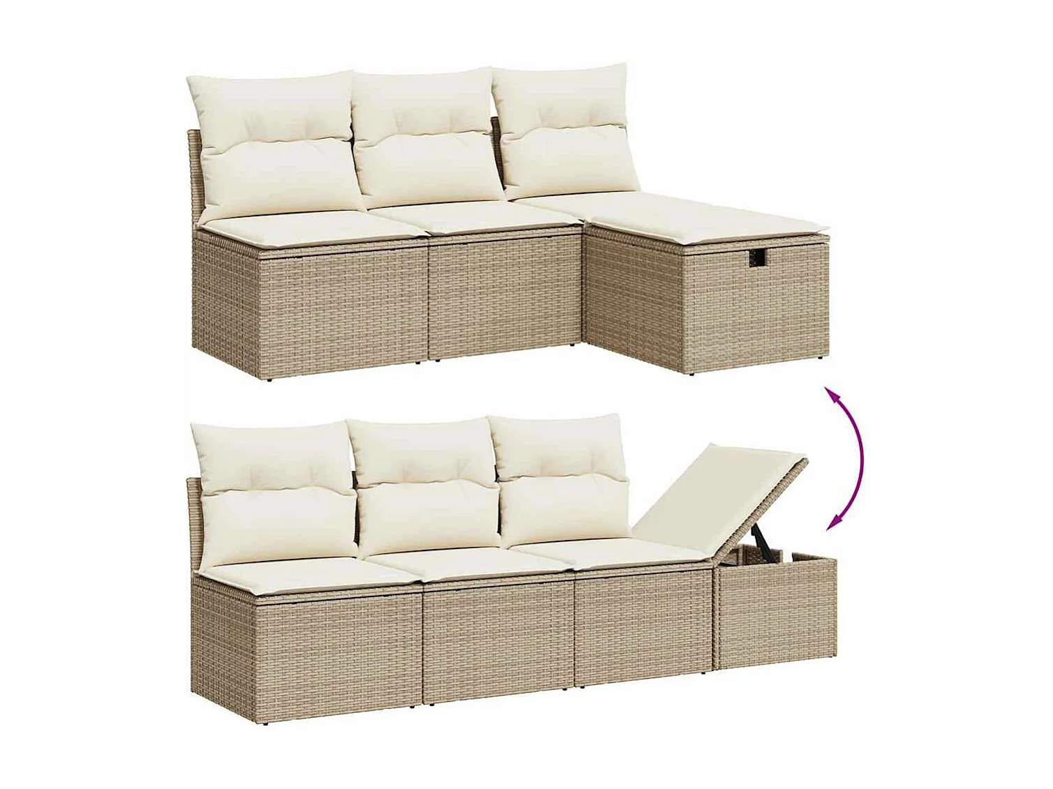 Salon de jardin avec coussins 9 pcs beige résine tressée