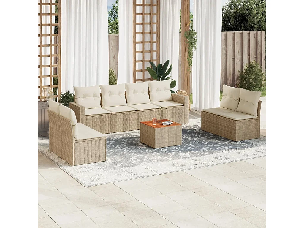 Salon de jardin avec coussins 9 pcs beige résine tressée