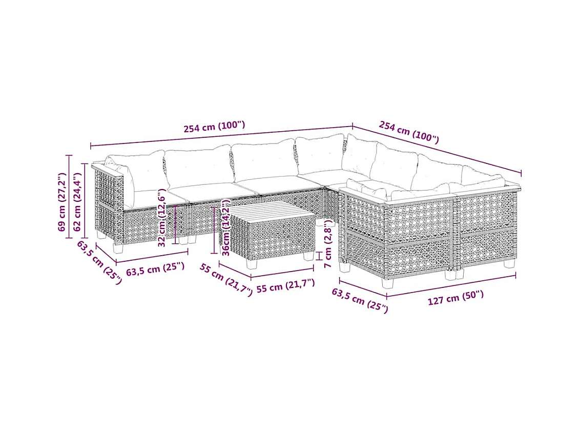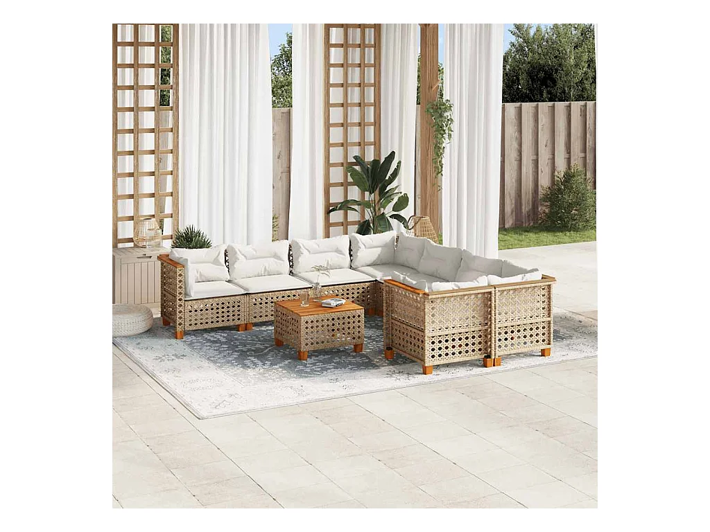 Salon de jardin avec coussins 9 pcs beige résine tressée