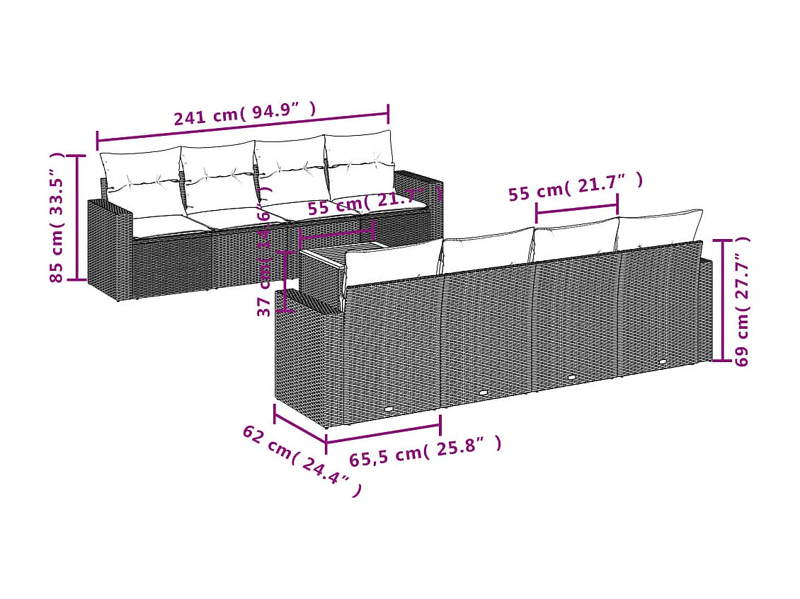 Salon de jardin avec coussins 9 pcs beige résine tressée
