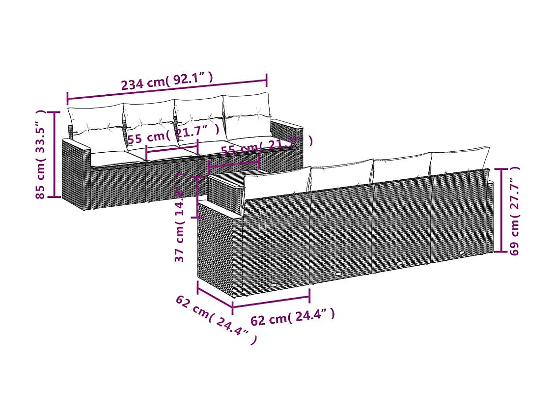 Salon de jardin avec coussins 9 pcs beige résine tressée