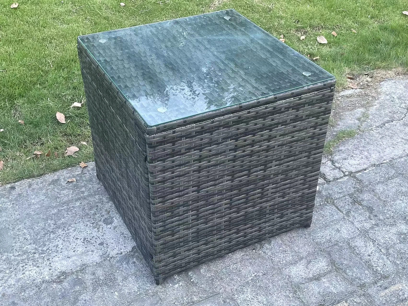 Salon de jardin avec Table basse rectangulaire 2 Grand tabourets Canapé 3 places 2 Tables d'appoint Gris foncé mixte