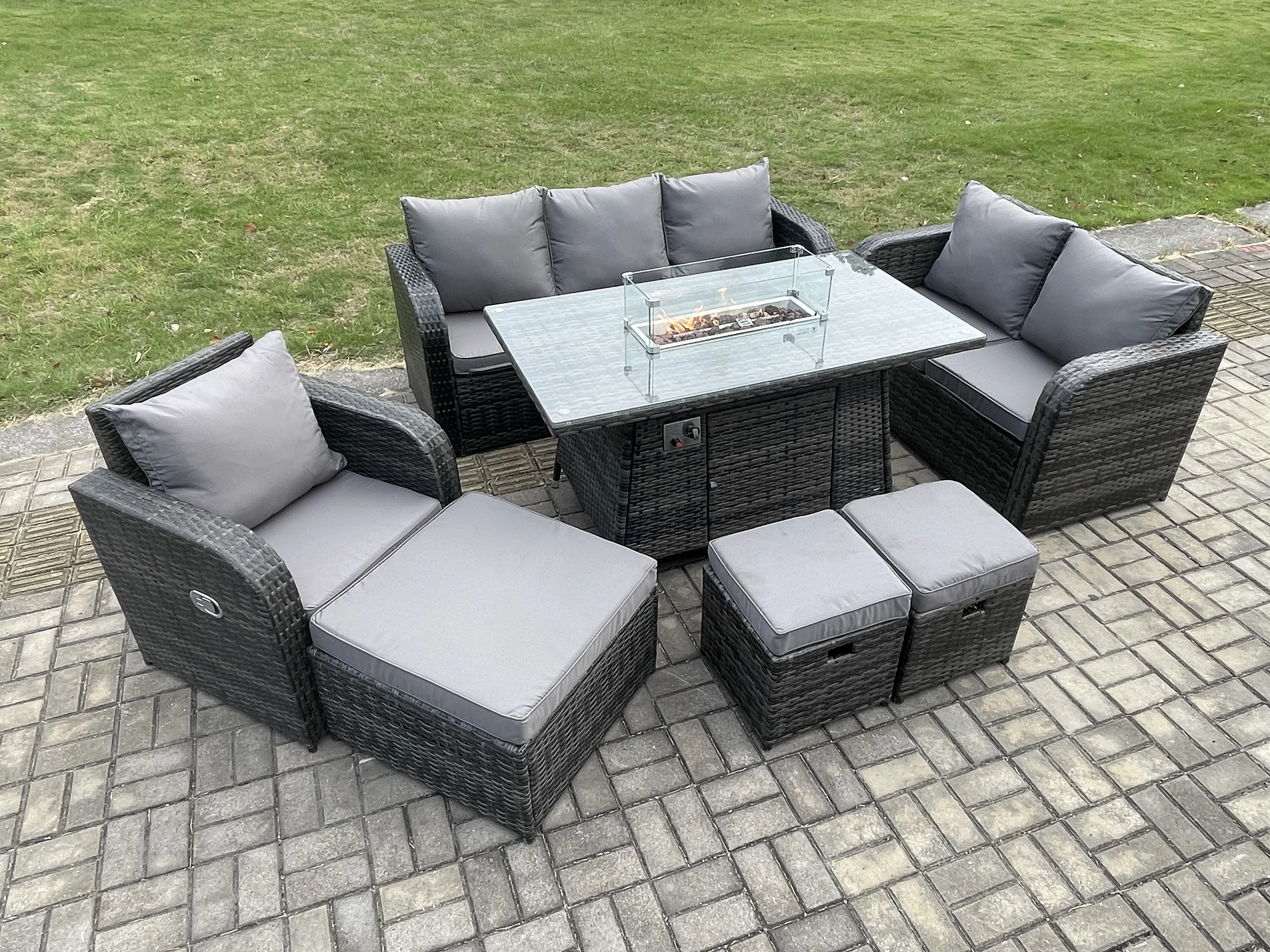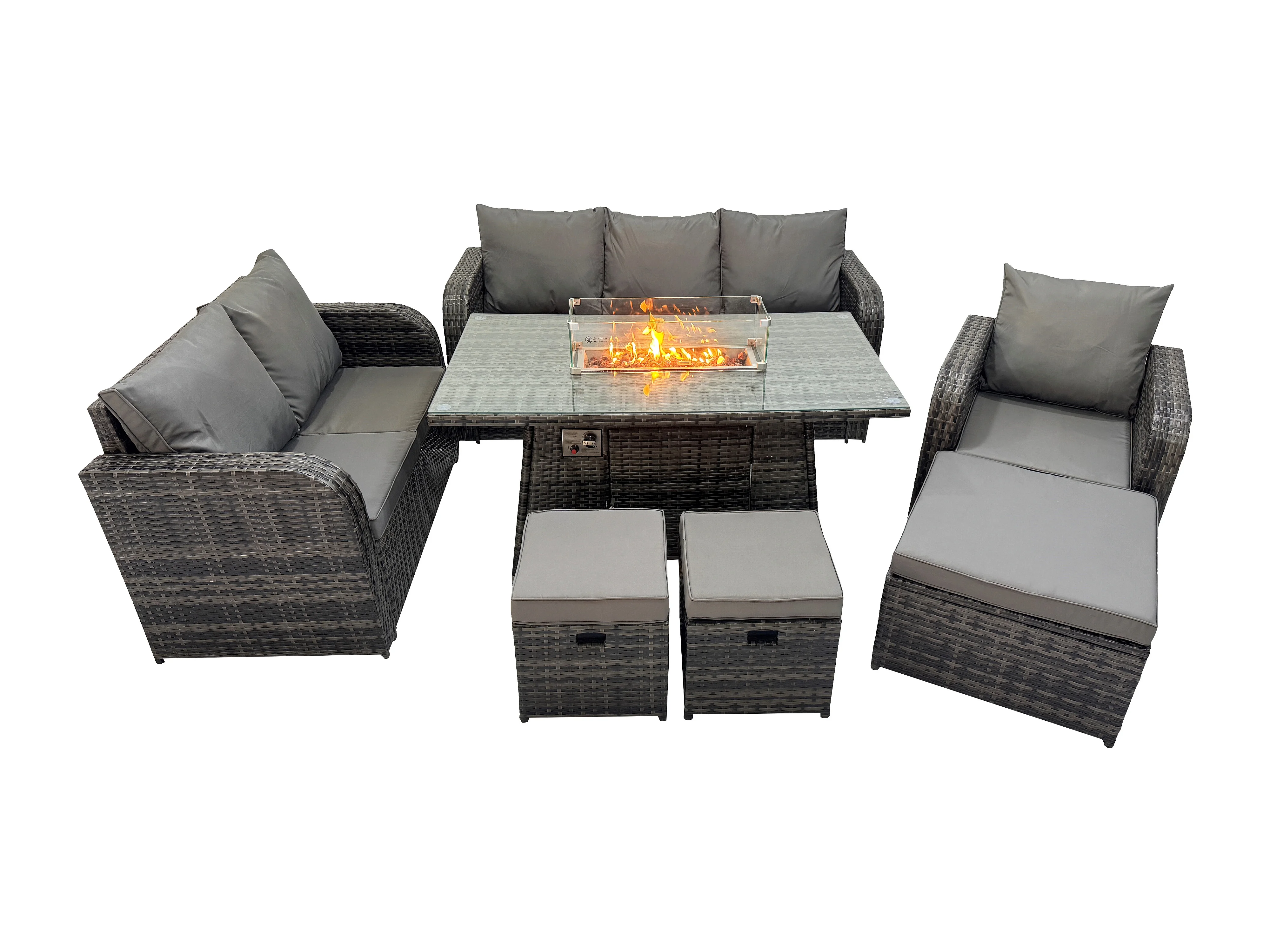Salon de jardin avec Table de foyer à gaz 9 places Ensemble de canapés en rotin Gris foncé mixte