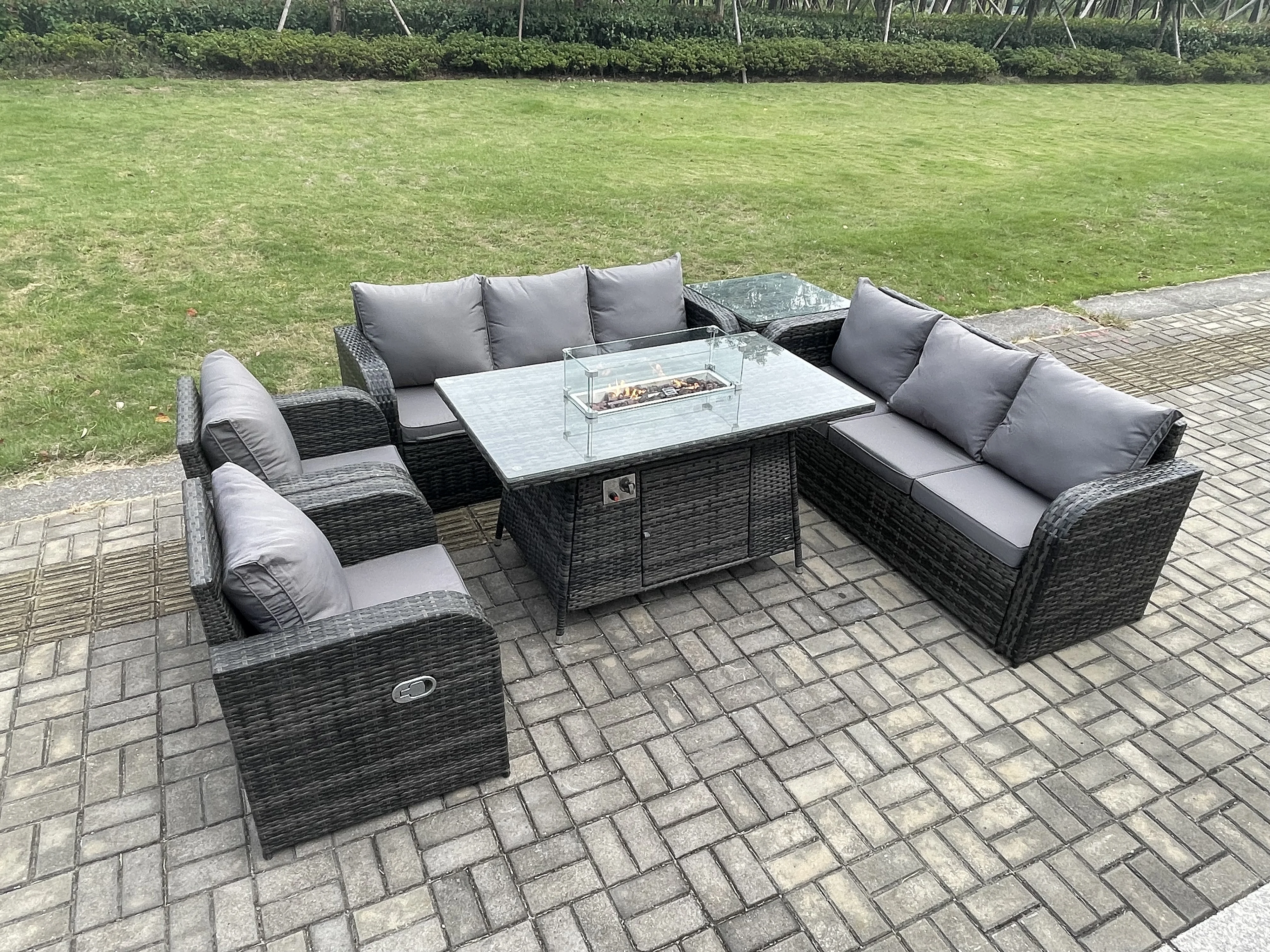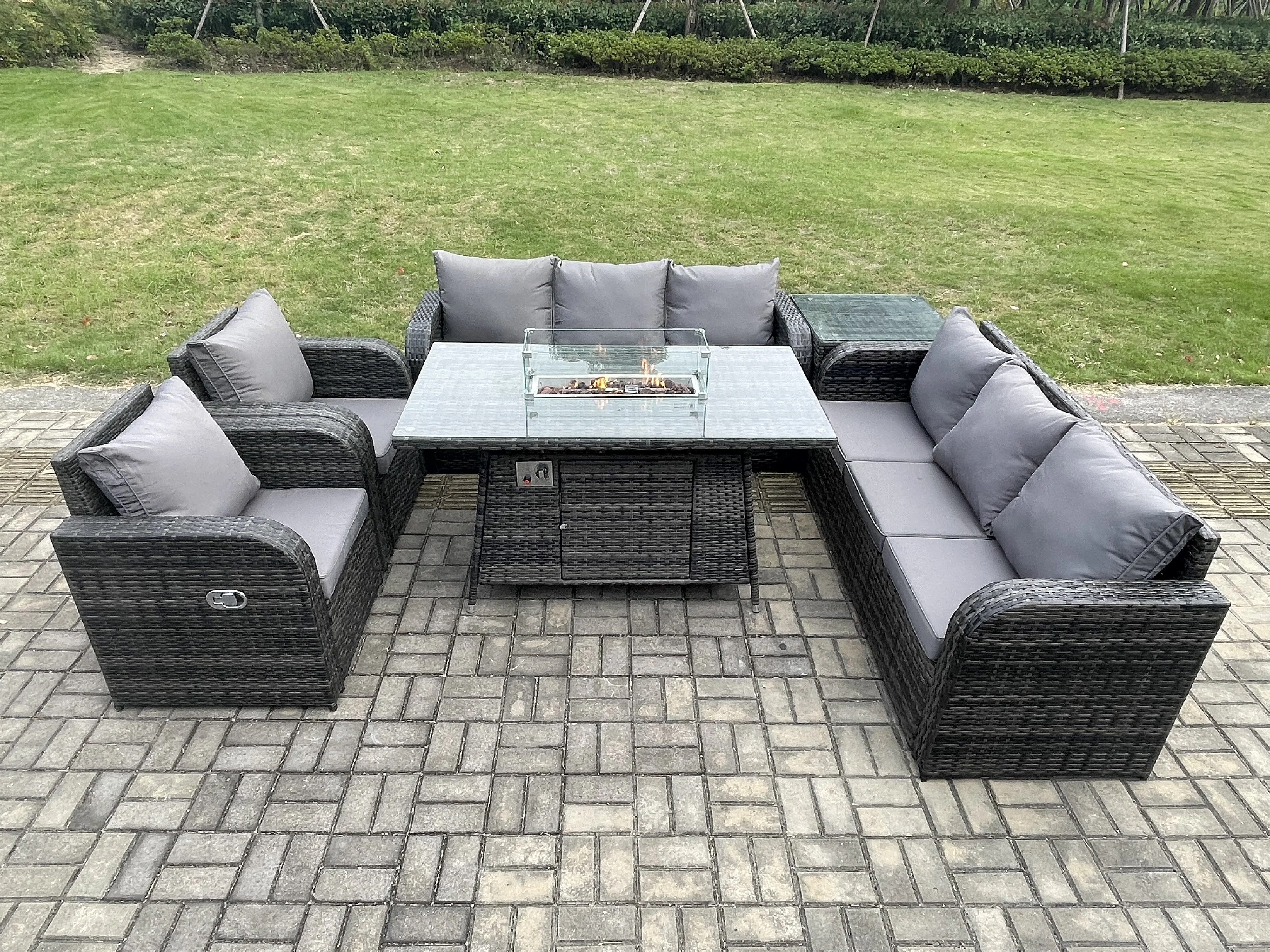 Salon de jardin avec Table de foyer à gaz,Fauteuil et Table d'appoint 8 places Outdoor Patio Canapé Lounge Set Gris foncé mixte