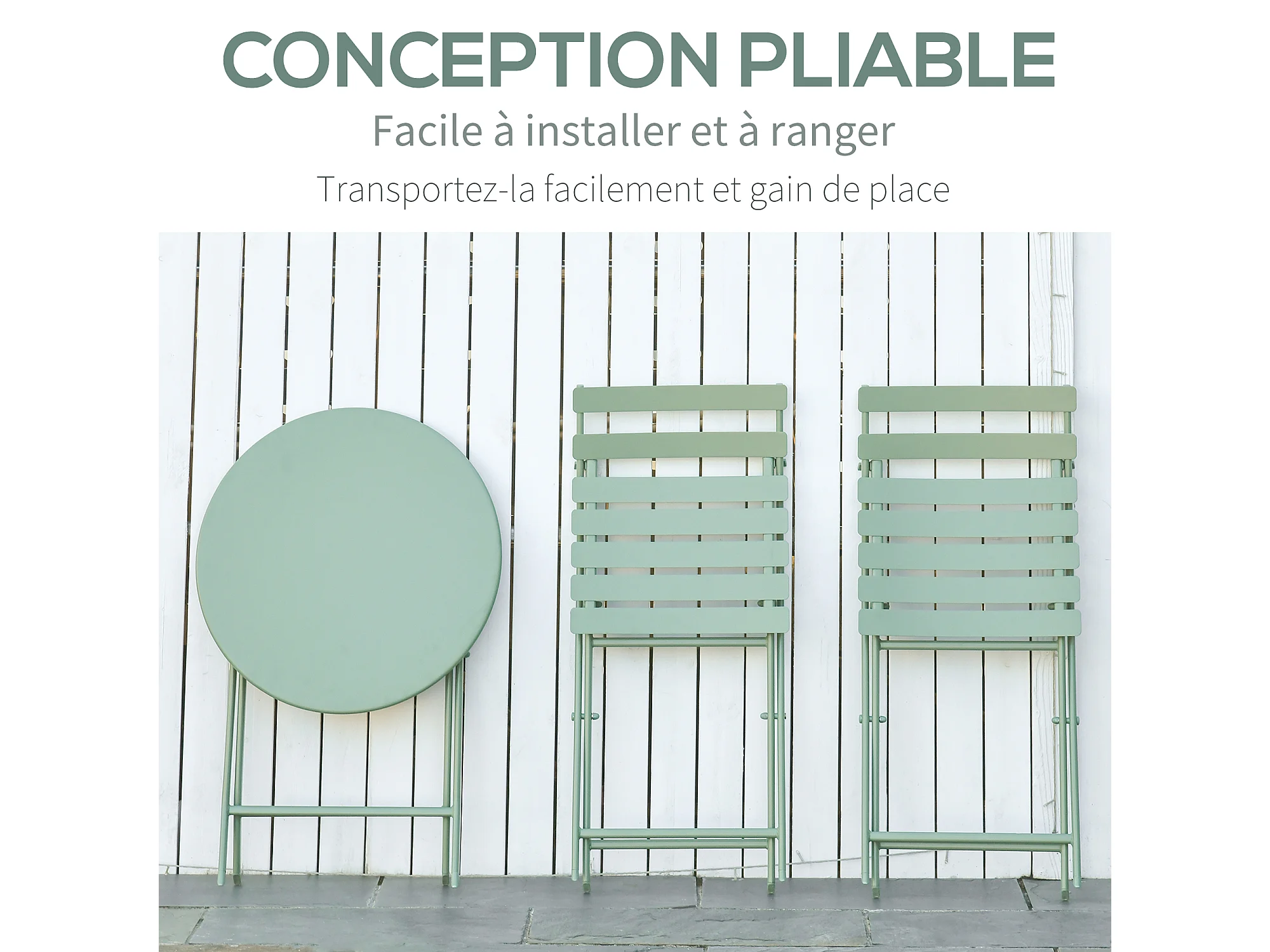 Table et chaises pliantes bistrot balcon terrasse- 2 places - Vert - FLORE