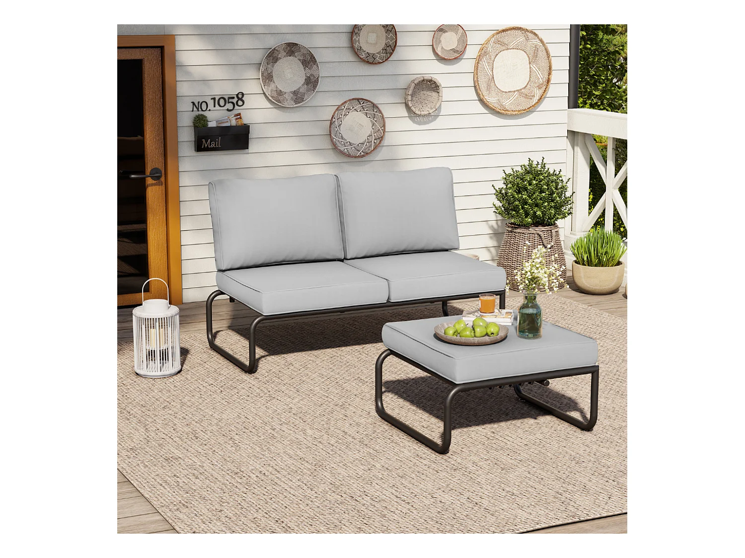 Salon de jardin canapé modulable 2-3 places gris en aluminium SORRENTO