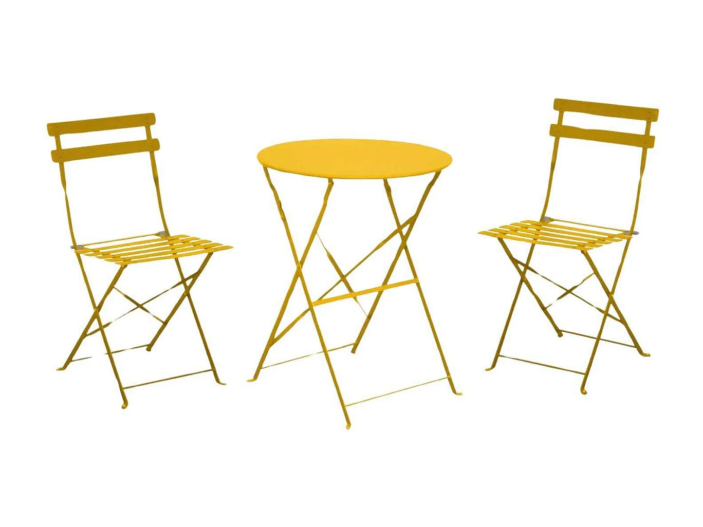 Service de bistrot avec table et 2 chaises en acier jaune ocre - YVONNE