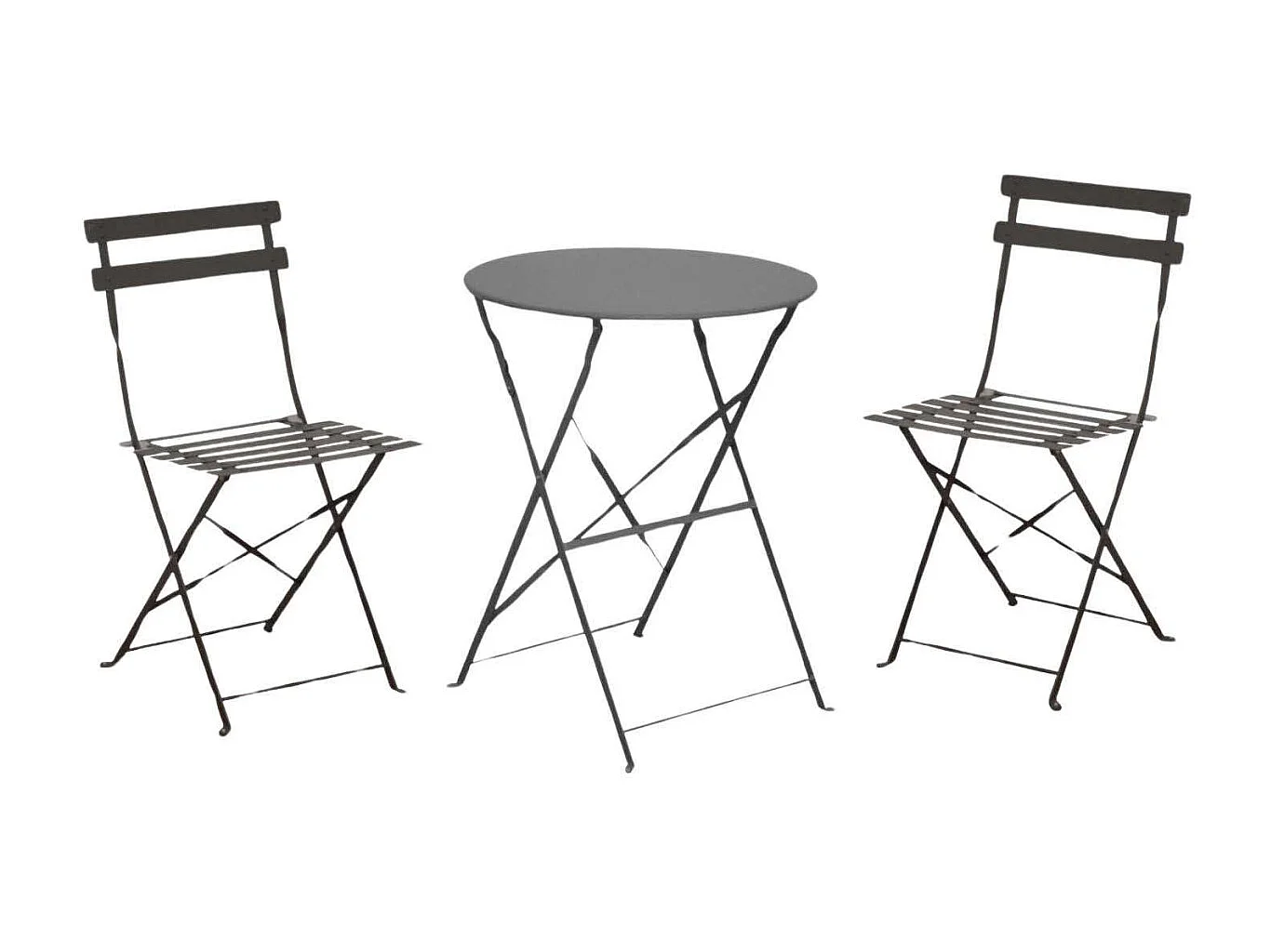 Table et chaises pliantes bistrot balcon terrasse - 2 places - Anthracite - FLORE