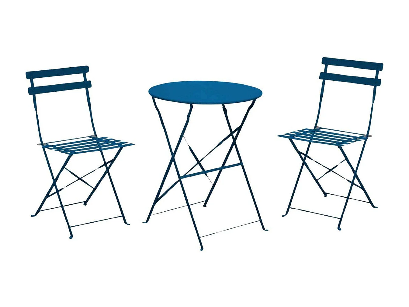 Ensemble table de jardin et 2 fauteuils métal bleu pacific - Palavas