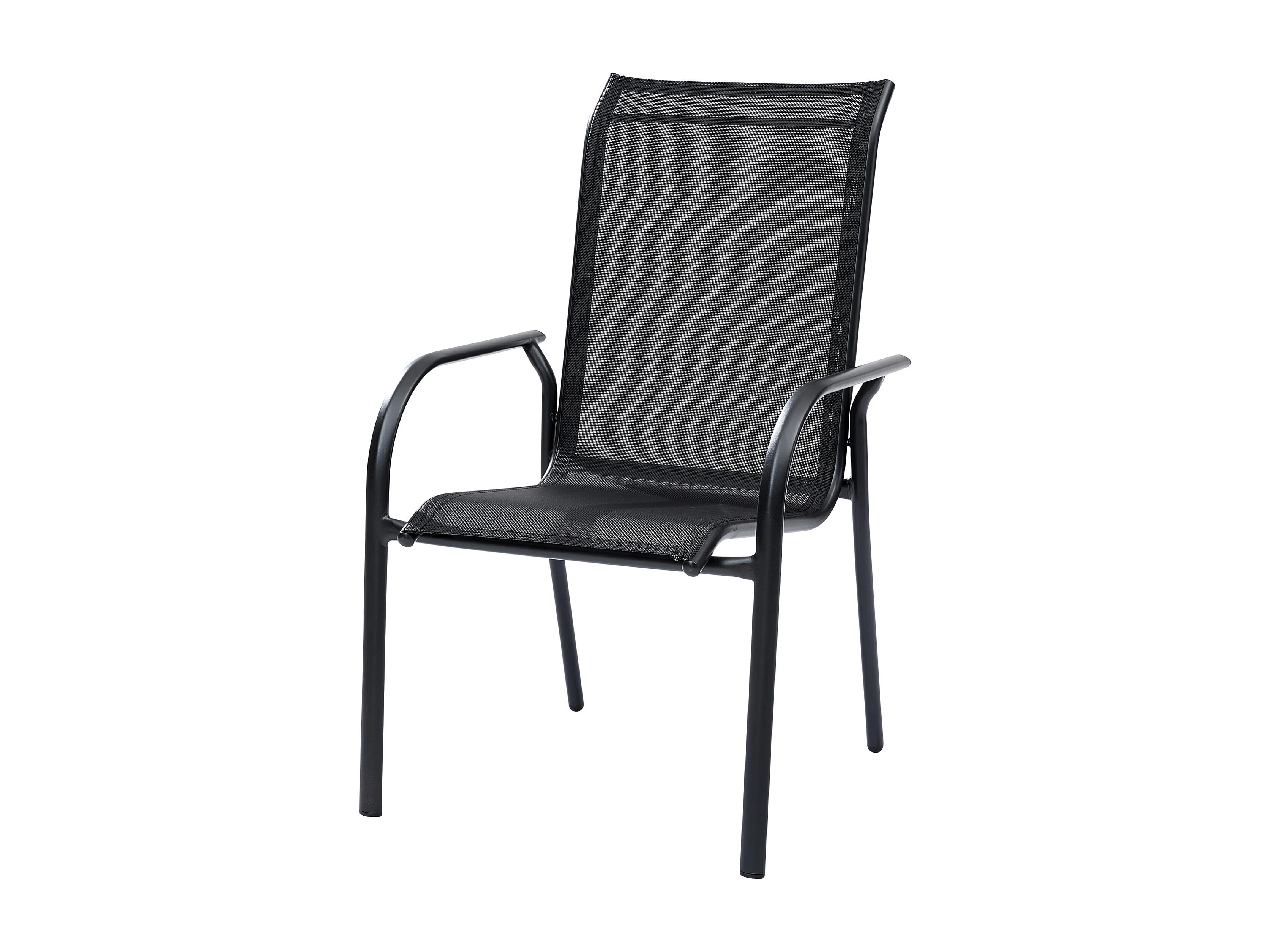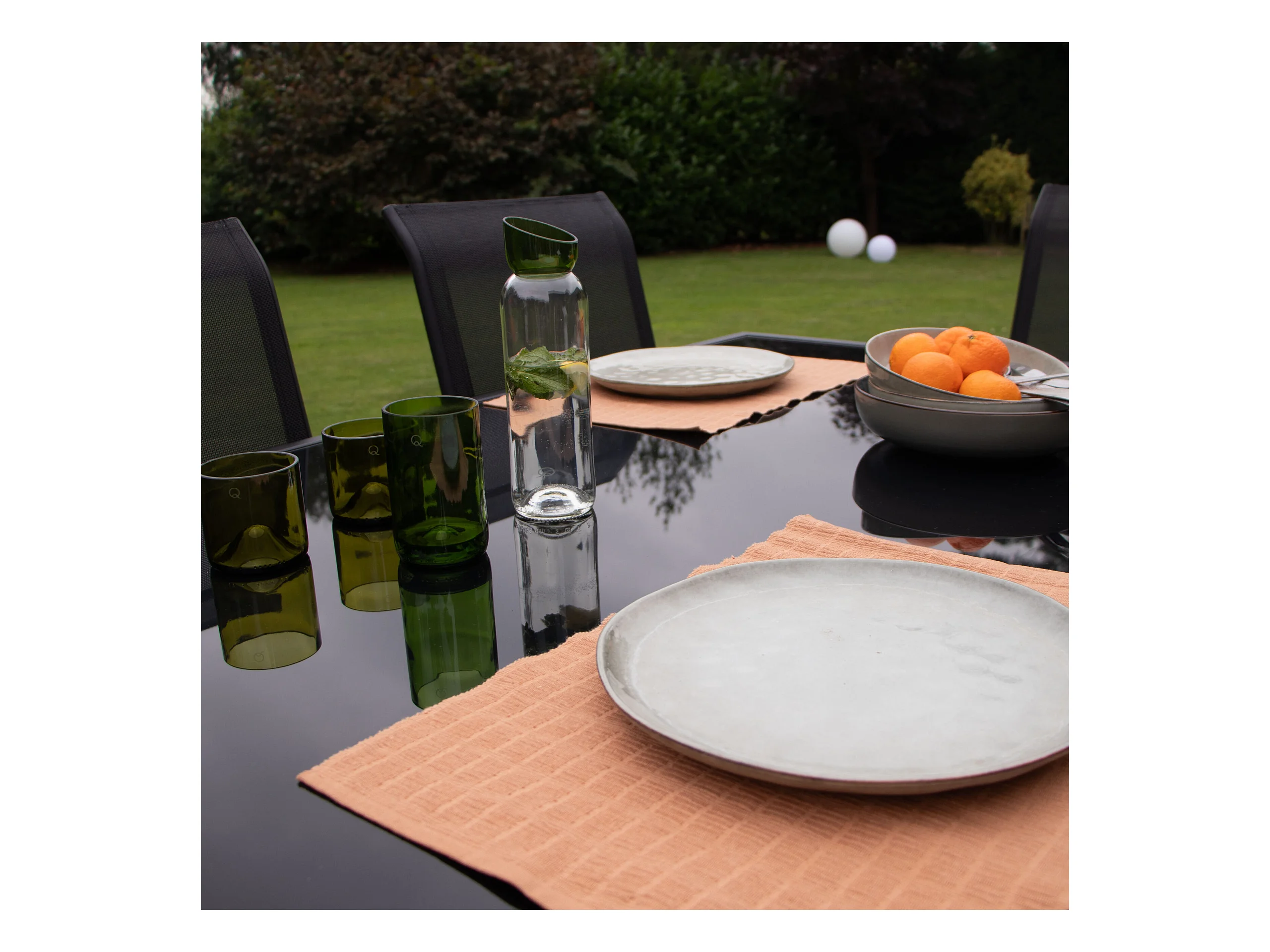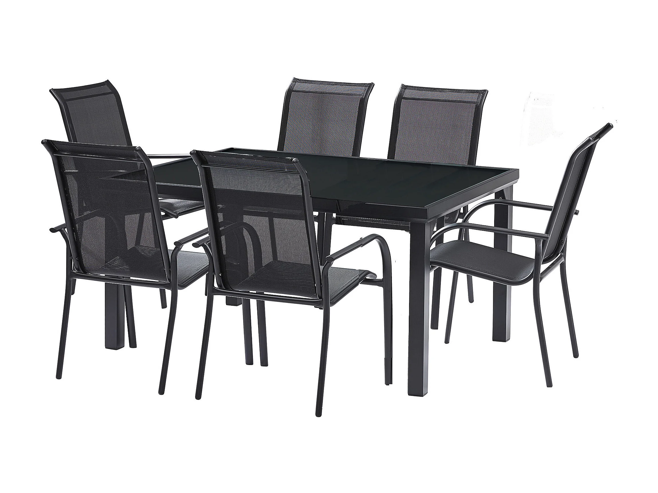 Ensemble BLACKEDITION 6p en aluminium, plateau en verre trempé opaque avec 6 fauteuils en textilène