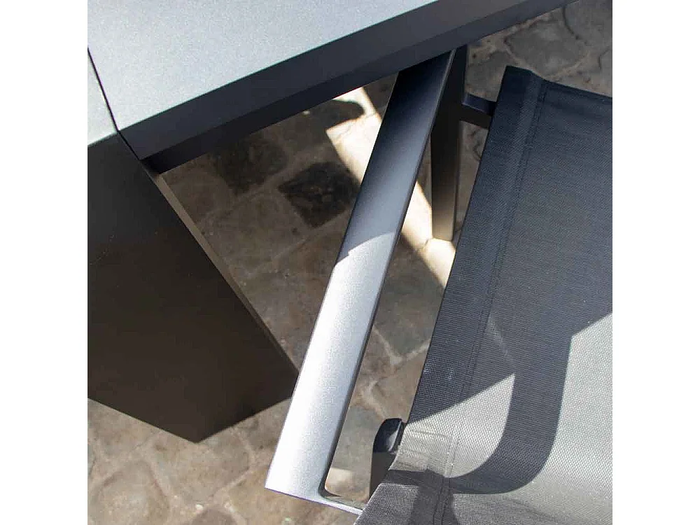 Ensemble IBIZA 6/8p en aluminium gris/noir et 8 fauteuils en textilène