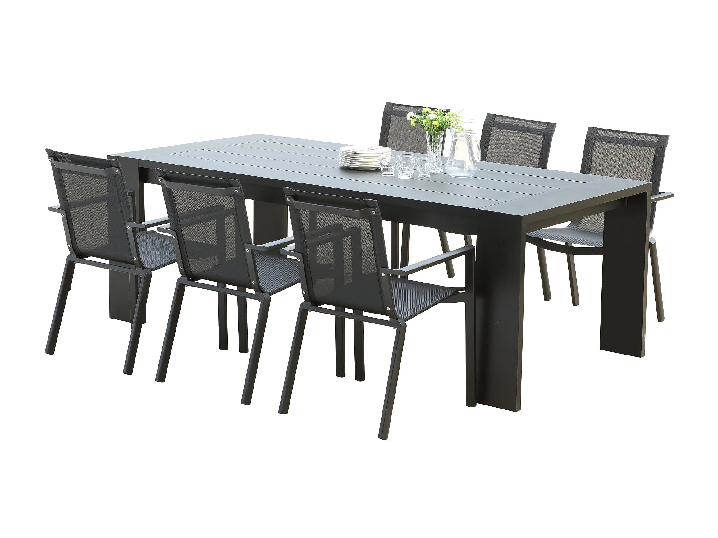 Ensemble IBIZA 6/8p en aluminium gris/noir et 6 fauteuils en textilène