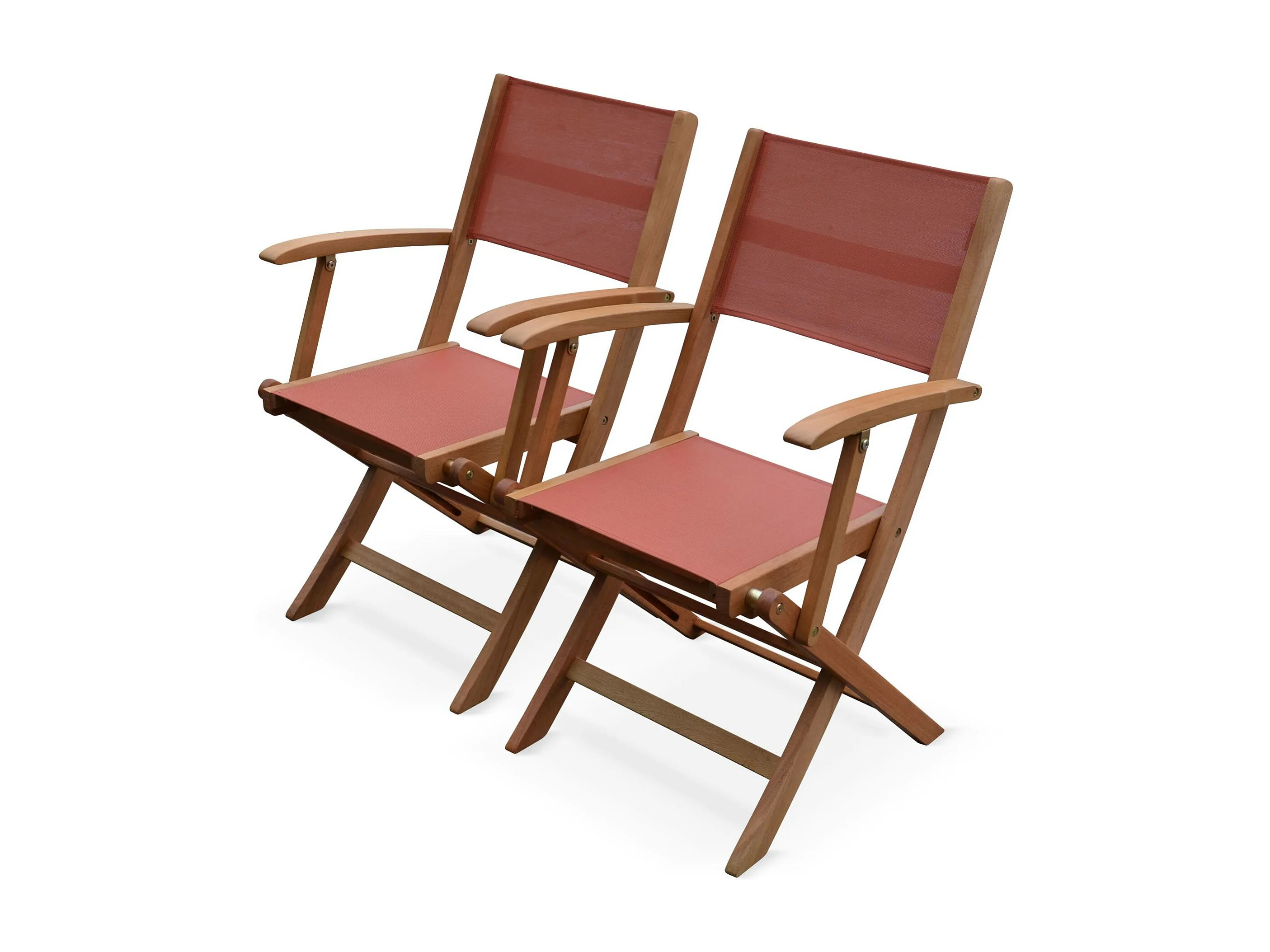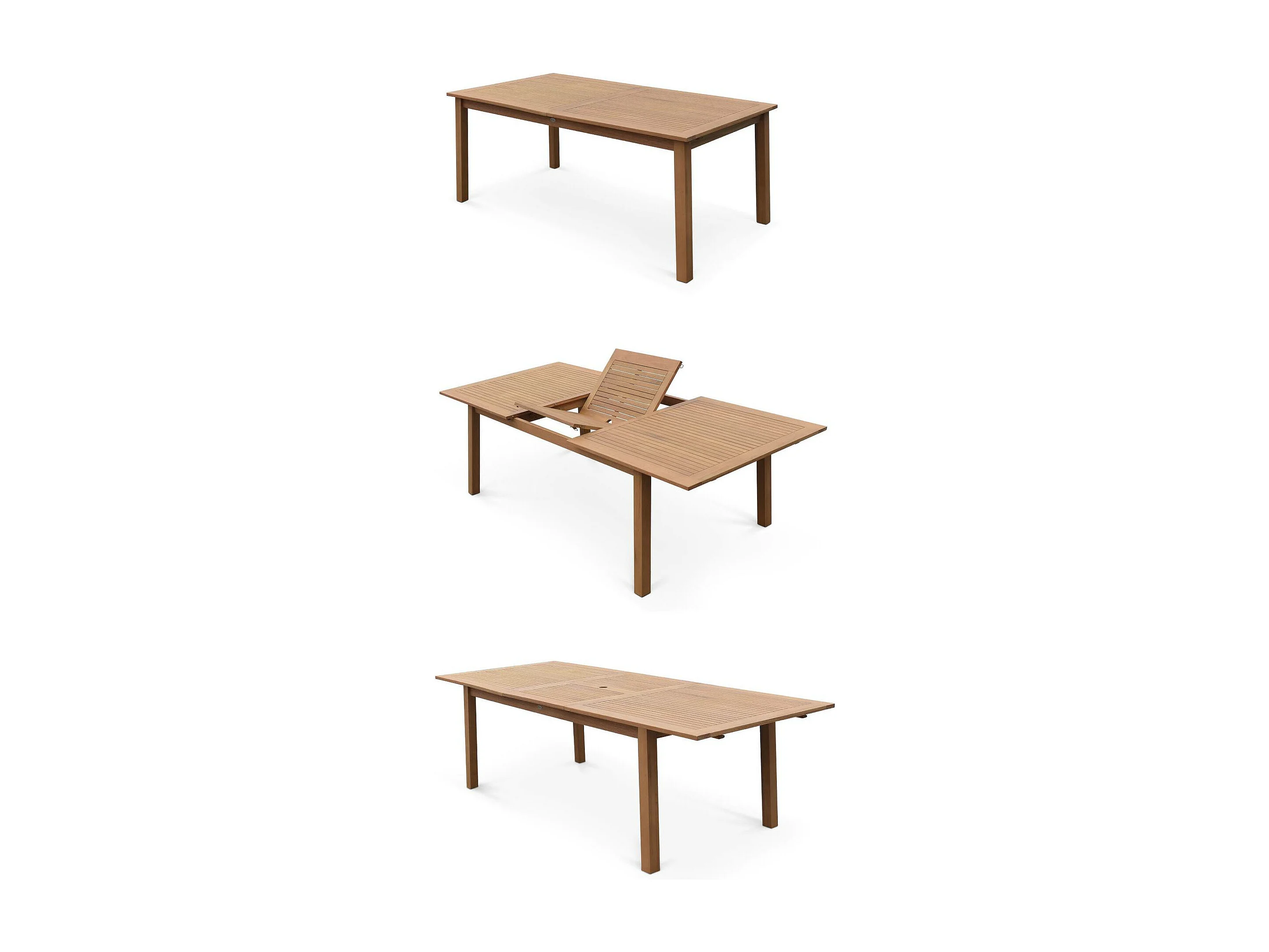 Table de jardin extensible bois d'eucalyptus + 8 assises en bois d'Eucalyptus huilé et textilène terracotta