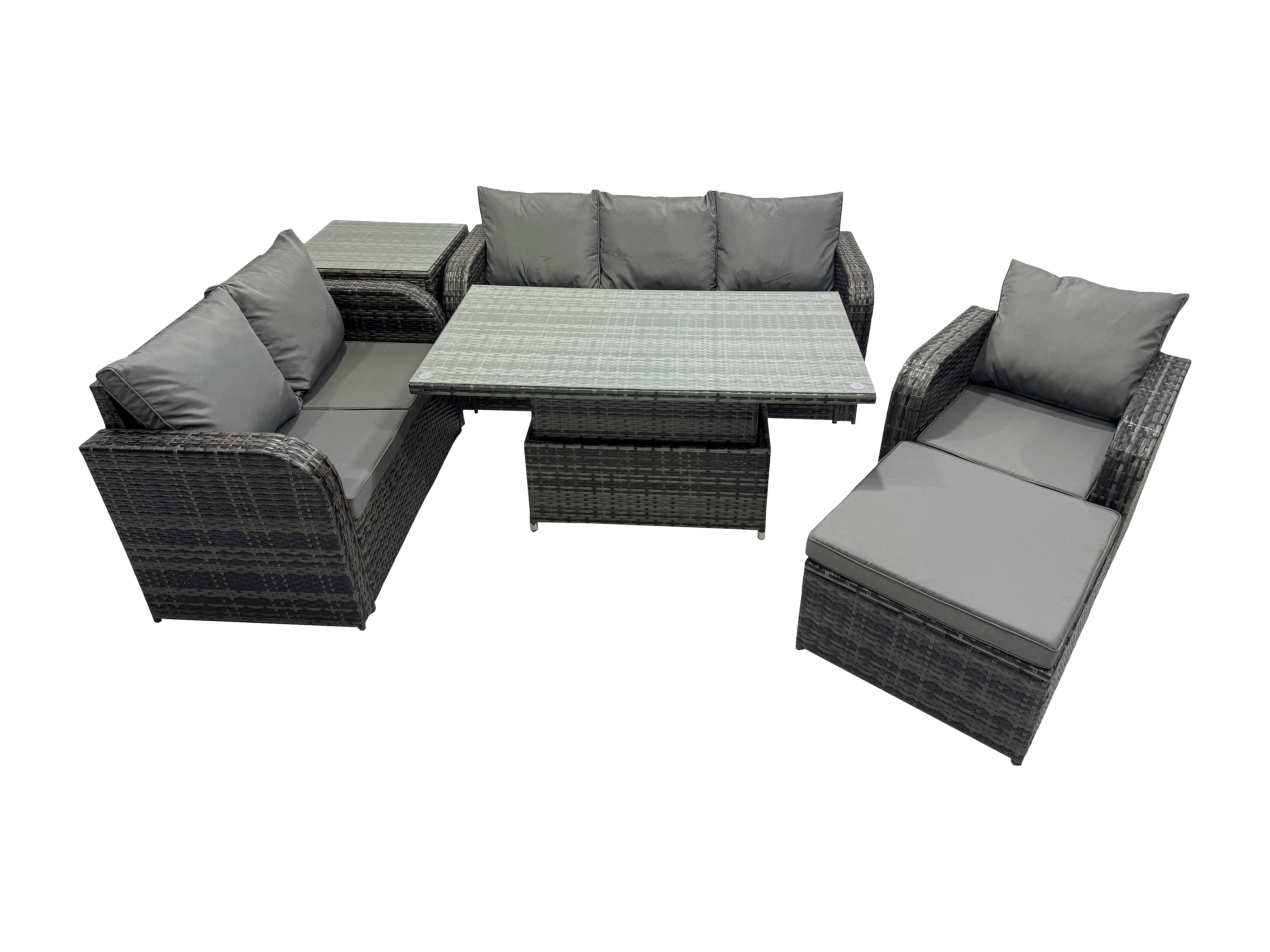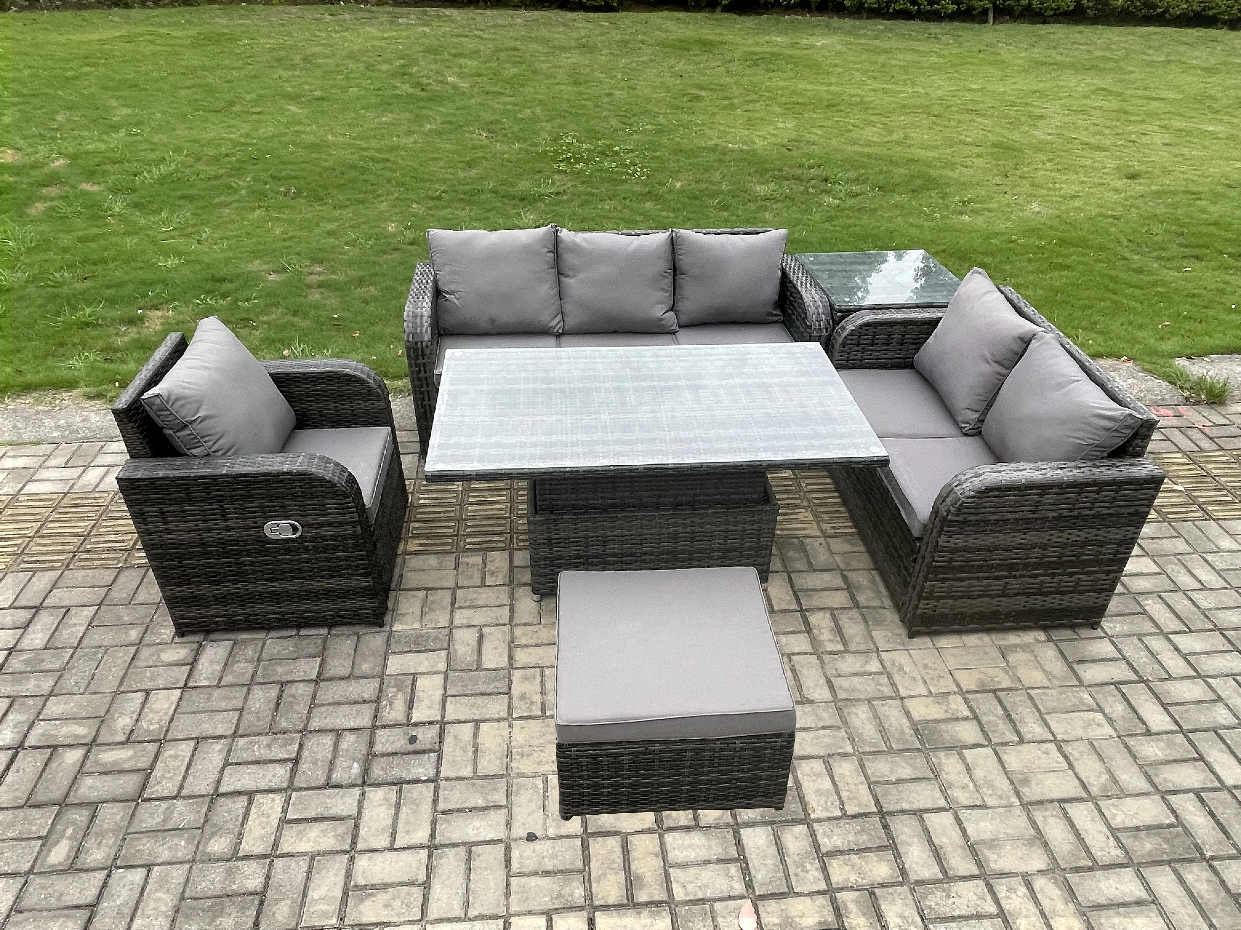 Salon de Jardin en Résine Ensemble Repas de Jardin Exterieur Table à manger réglable en hauteur Chaise inclinable Canapé avec Table d'appoint Grand tabouret