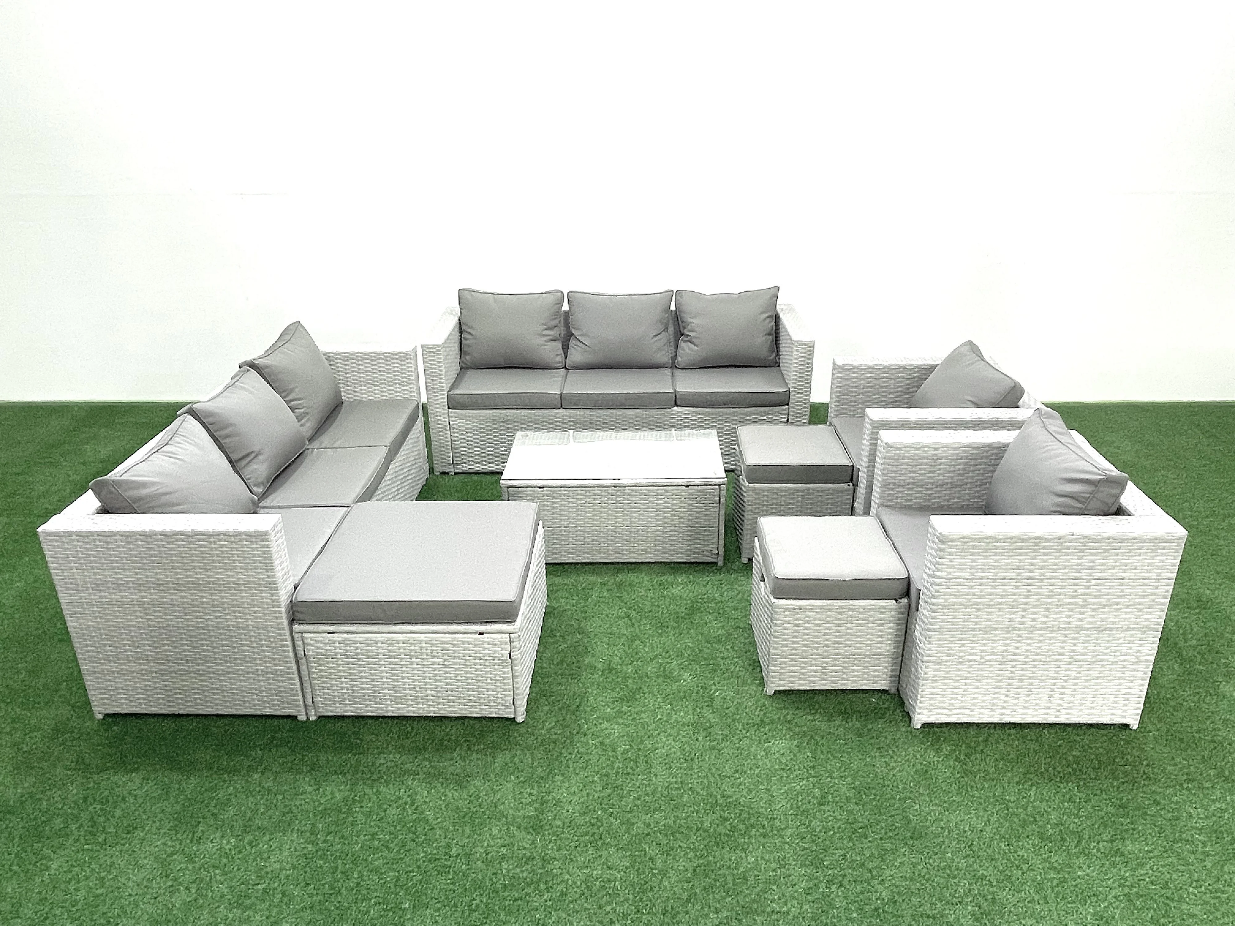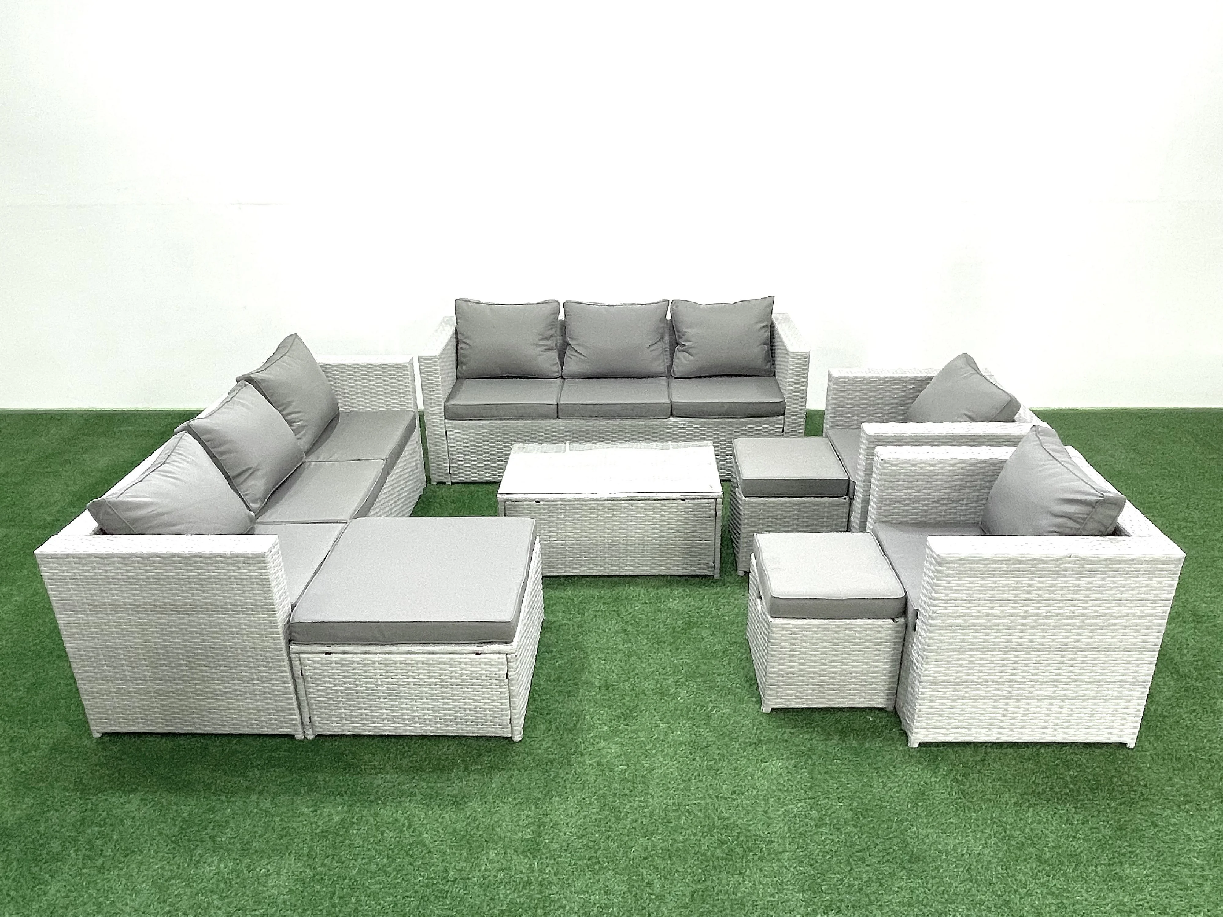 Salon de Jardin en rotin avec 2 Fauteuil Table basse oblongue 3 Tabourets Gris clair mixte