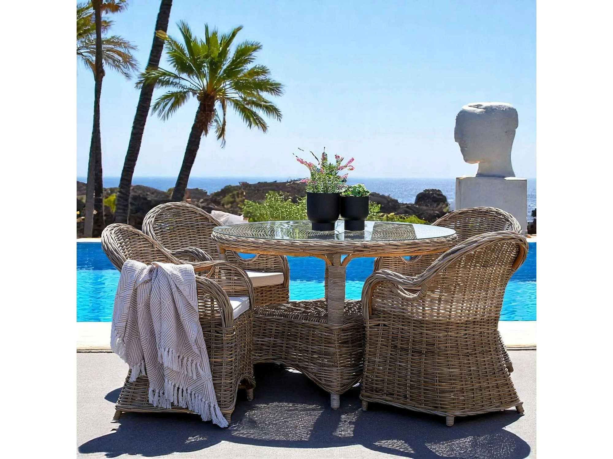 Salon de jardin en rotin gris (1 table ronde ø120 cm, 4 fauteuils de jardin) MENDOZA