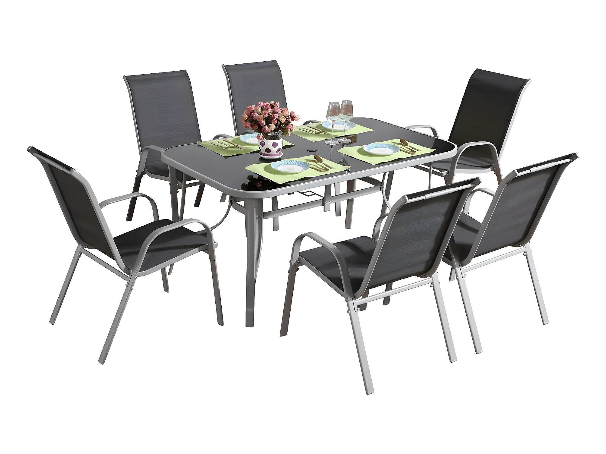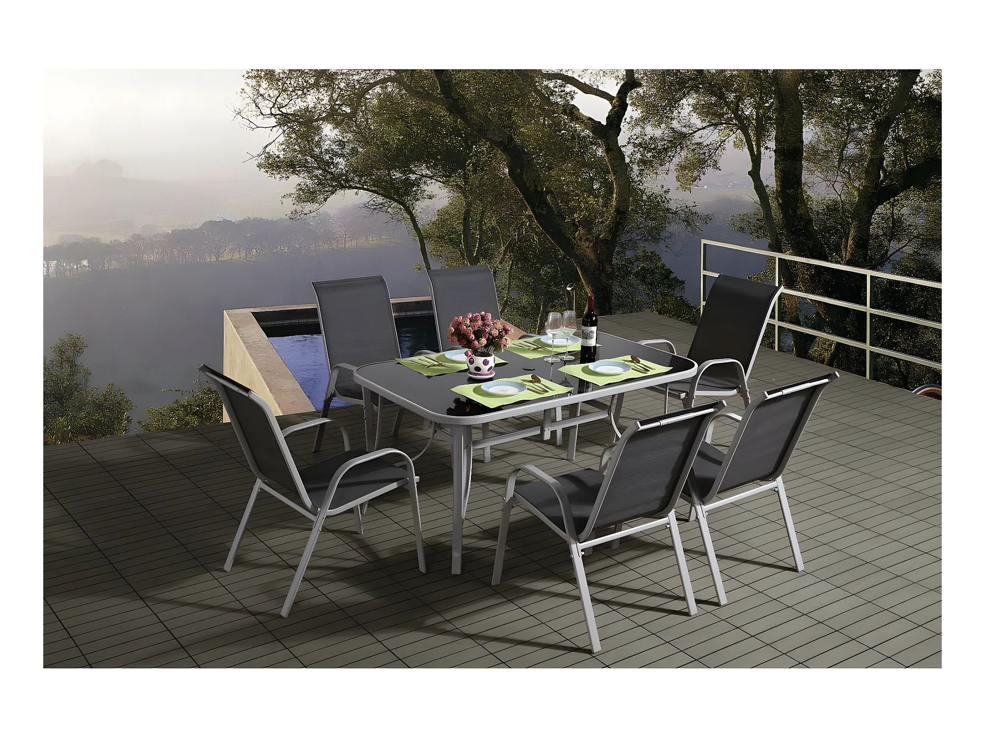 Salon de jardin en textilène "Cordoba" - Phoenix - 6 places - Gris foncé