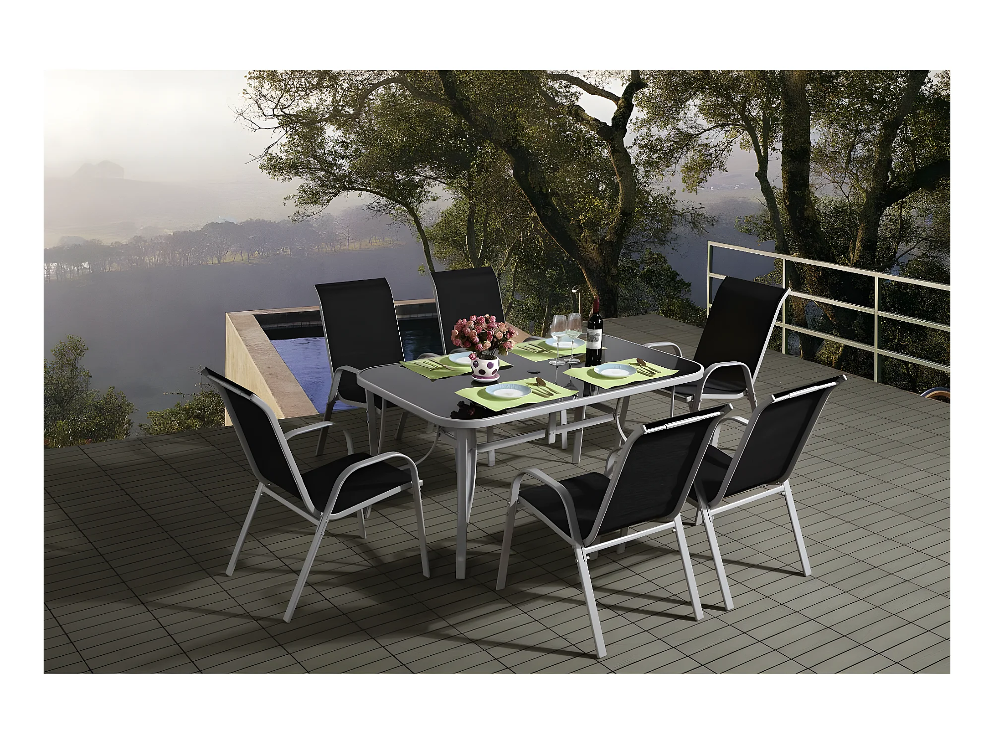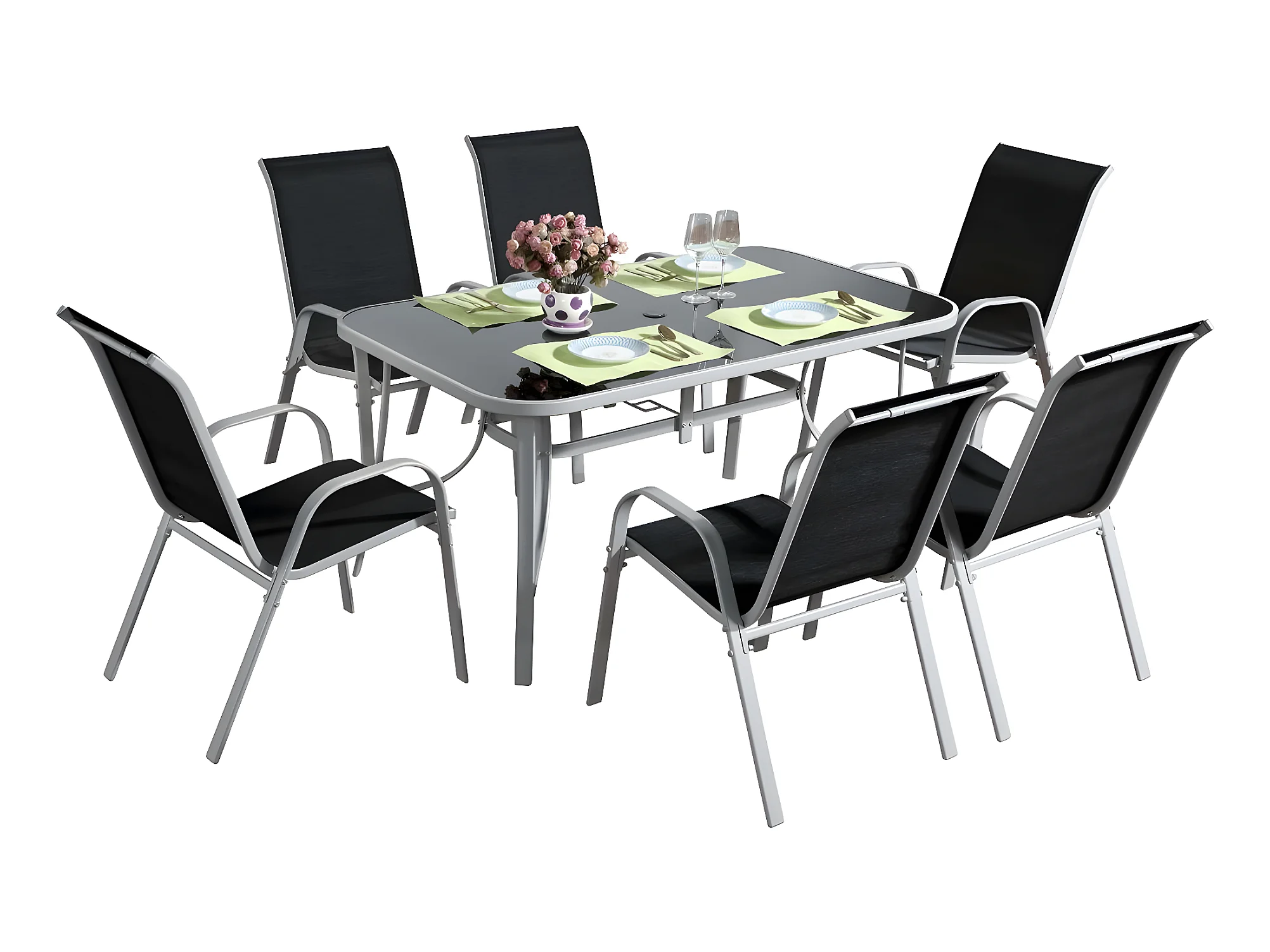 Salon de jardin en textilène "Cordoba" - Phoenix - 6 places - Noir