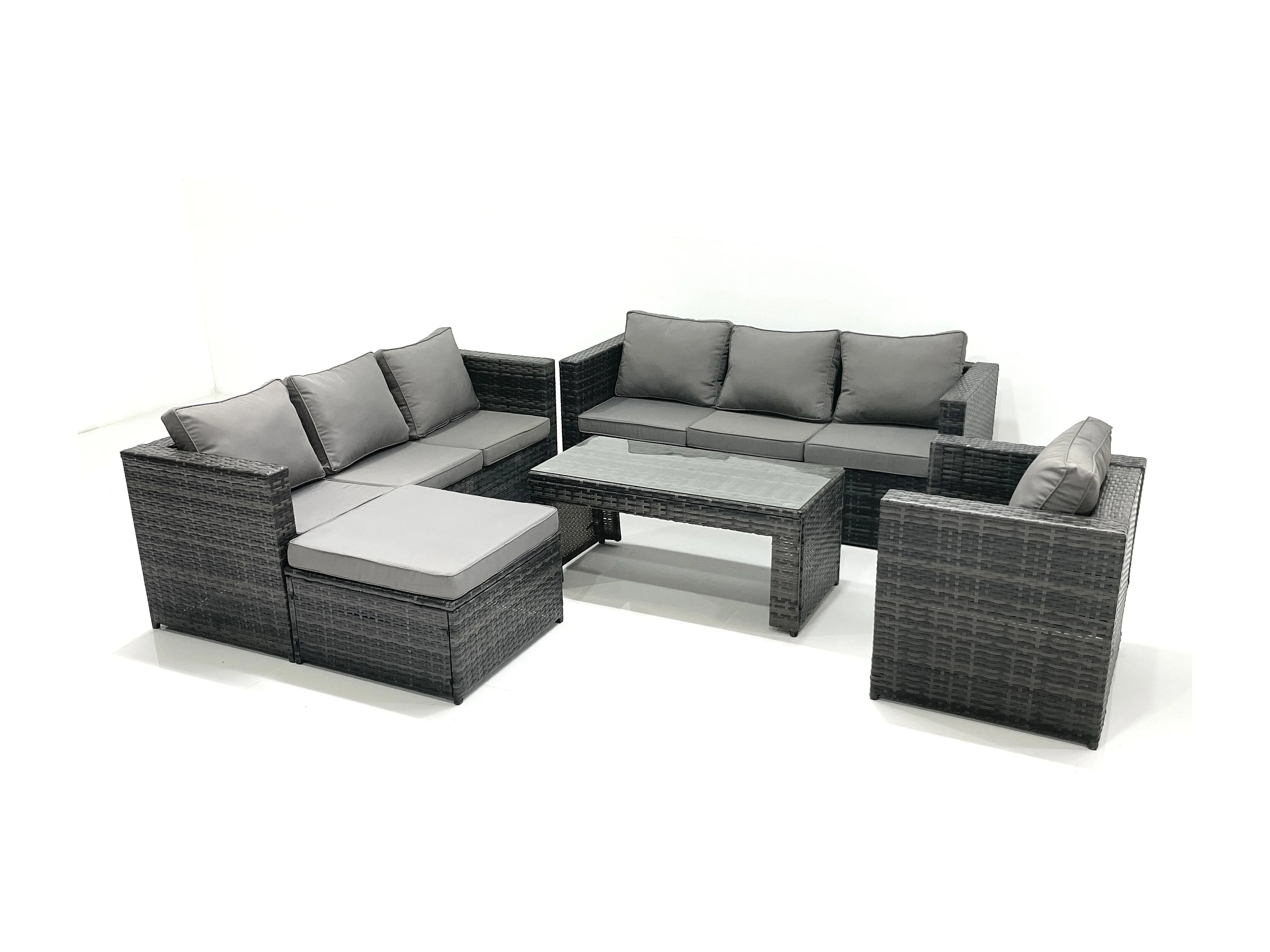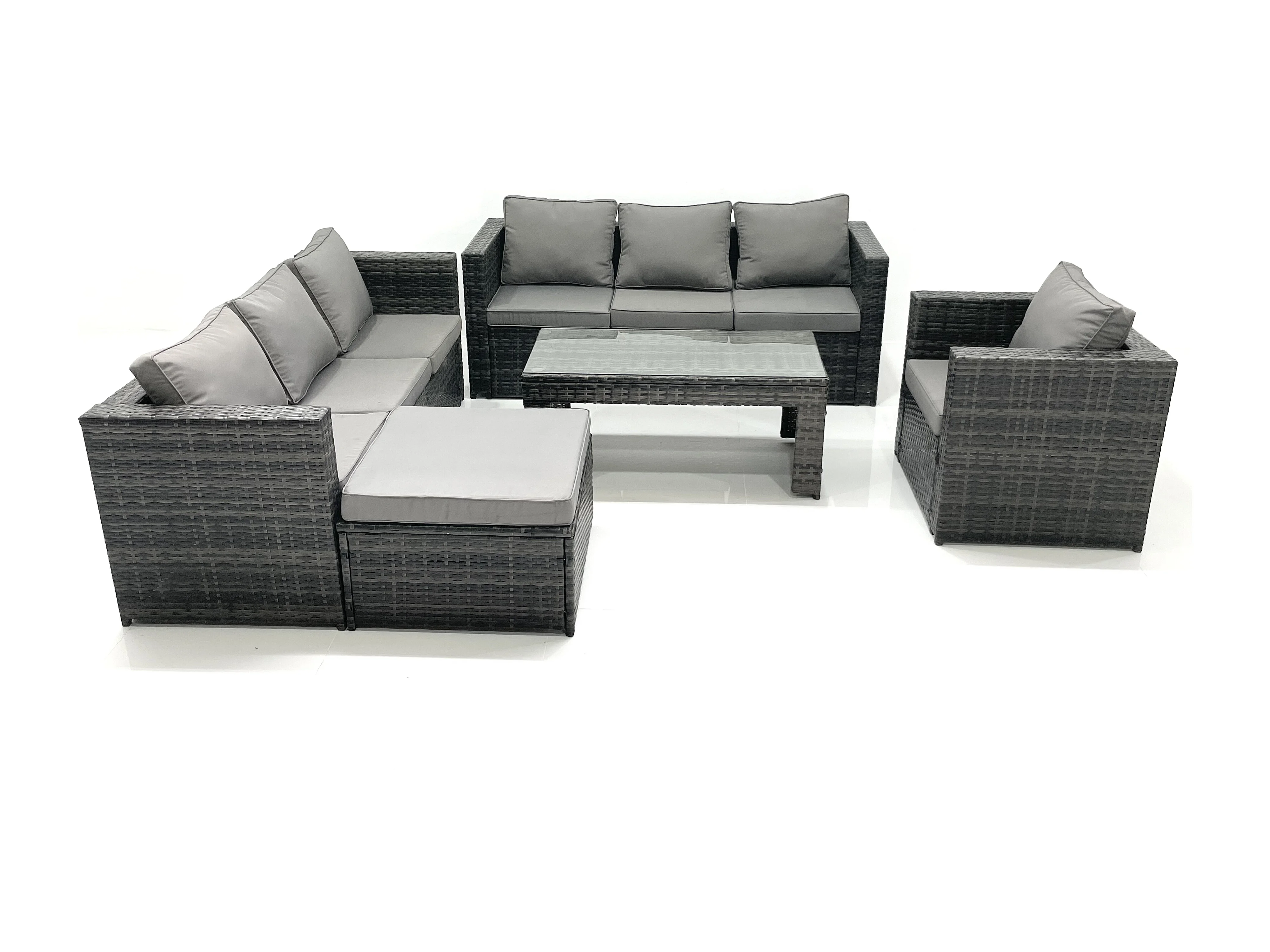 Salon de jardin Ensemble 8 places avec Dessus en verre Table basse