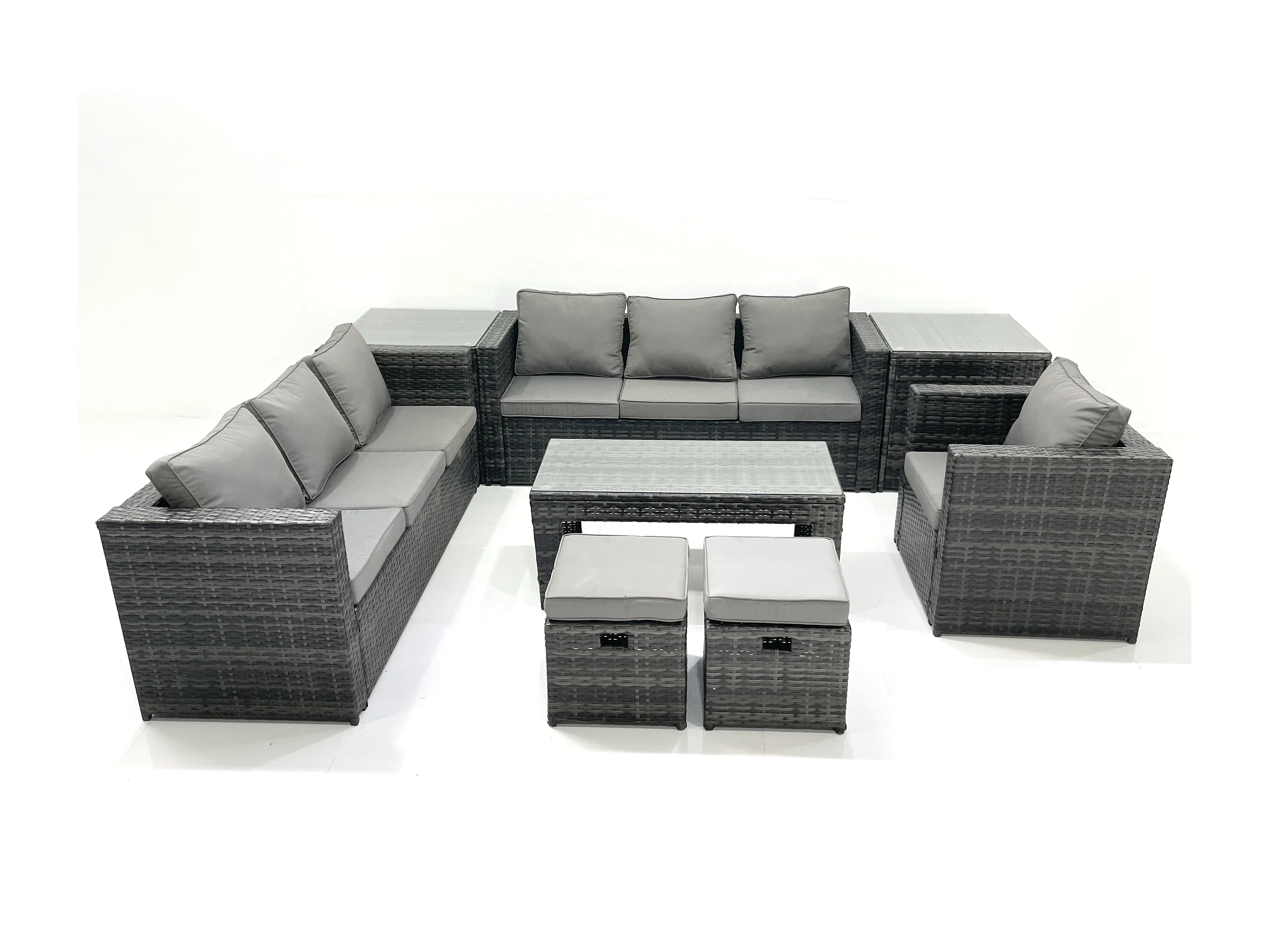 Salon de jardin Ensemble 9 places avec Dessus en verre Table basse 2 Petits tabourets 2 Tables d'appoint