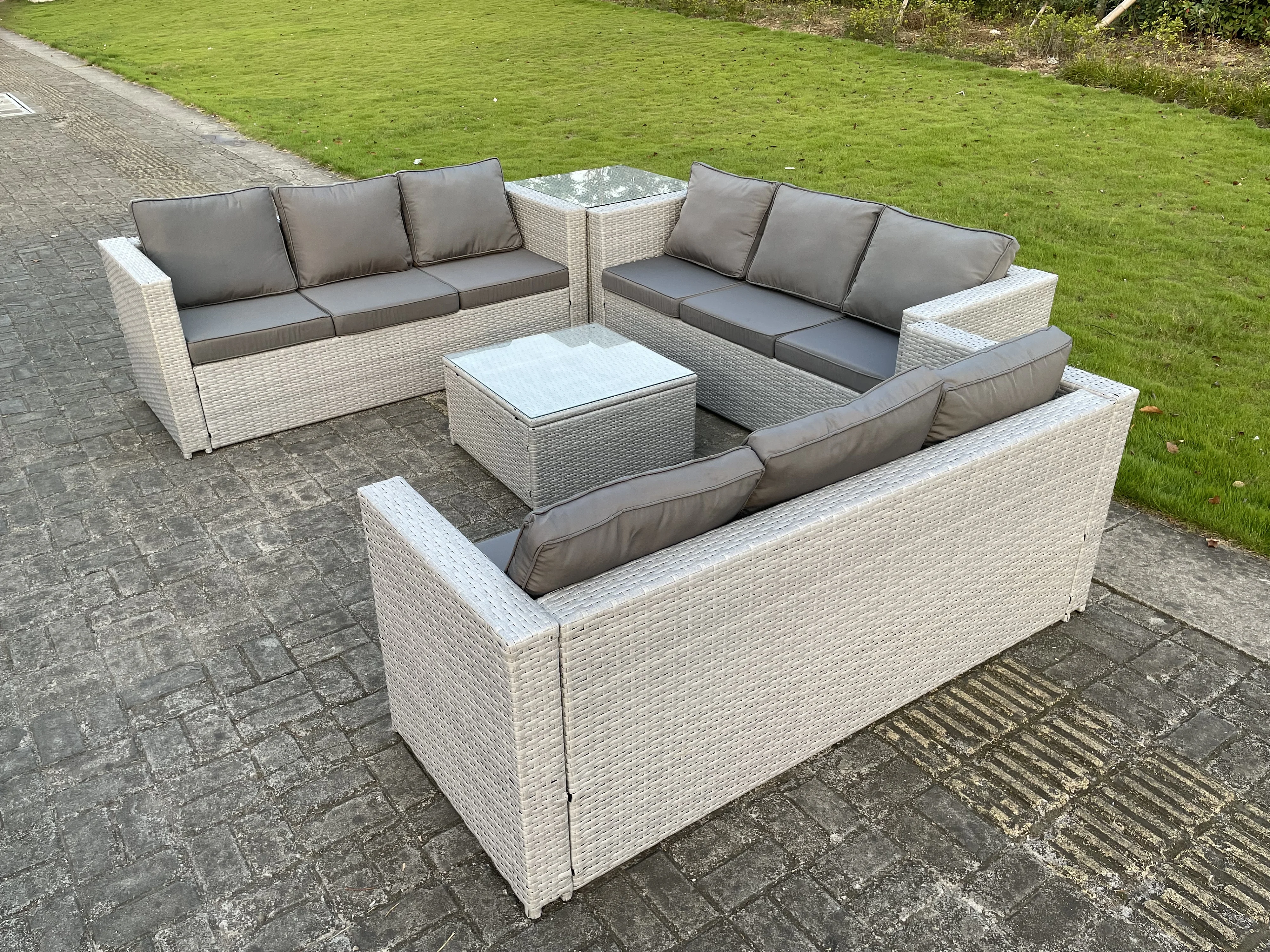 Salon de Jardin Ensemble 9 placesEnsemble de canapé en rotin ave Canapé 3 places Table d'appoint Table basse Carrée Gris Clair