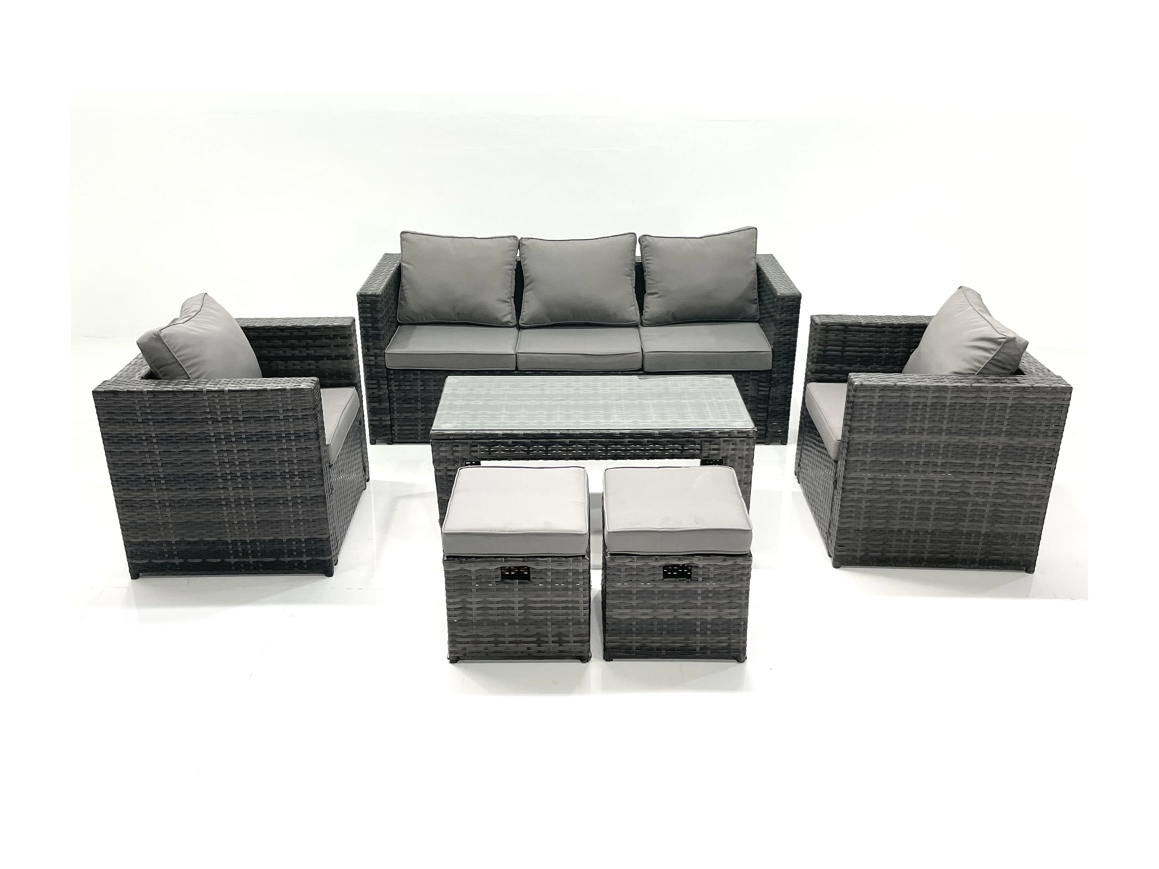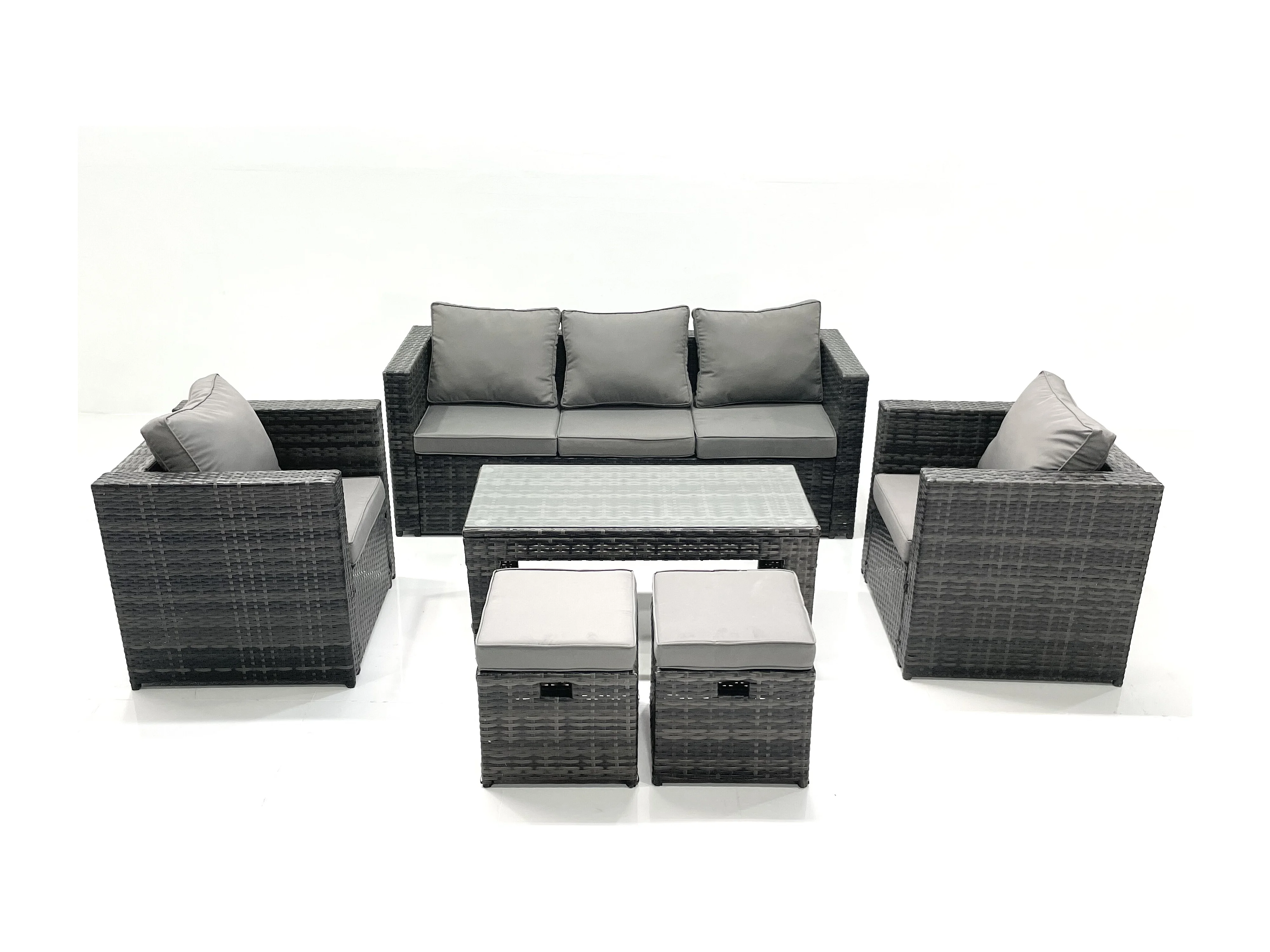 Salon de jardin Ensemble de canapés en rotin avec Table basse 2 Fauteuil 2 Petits tabourets Gris foncé mixte