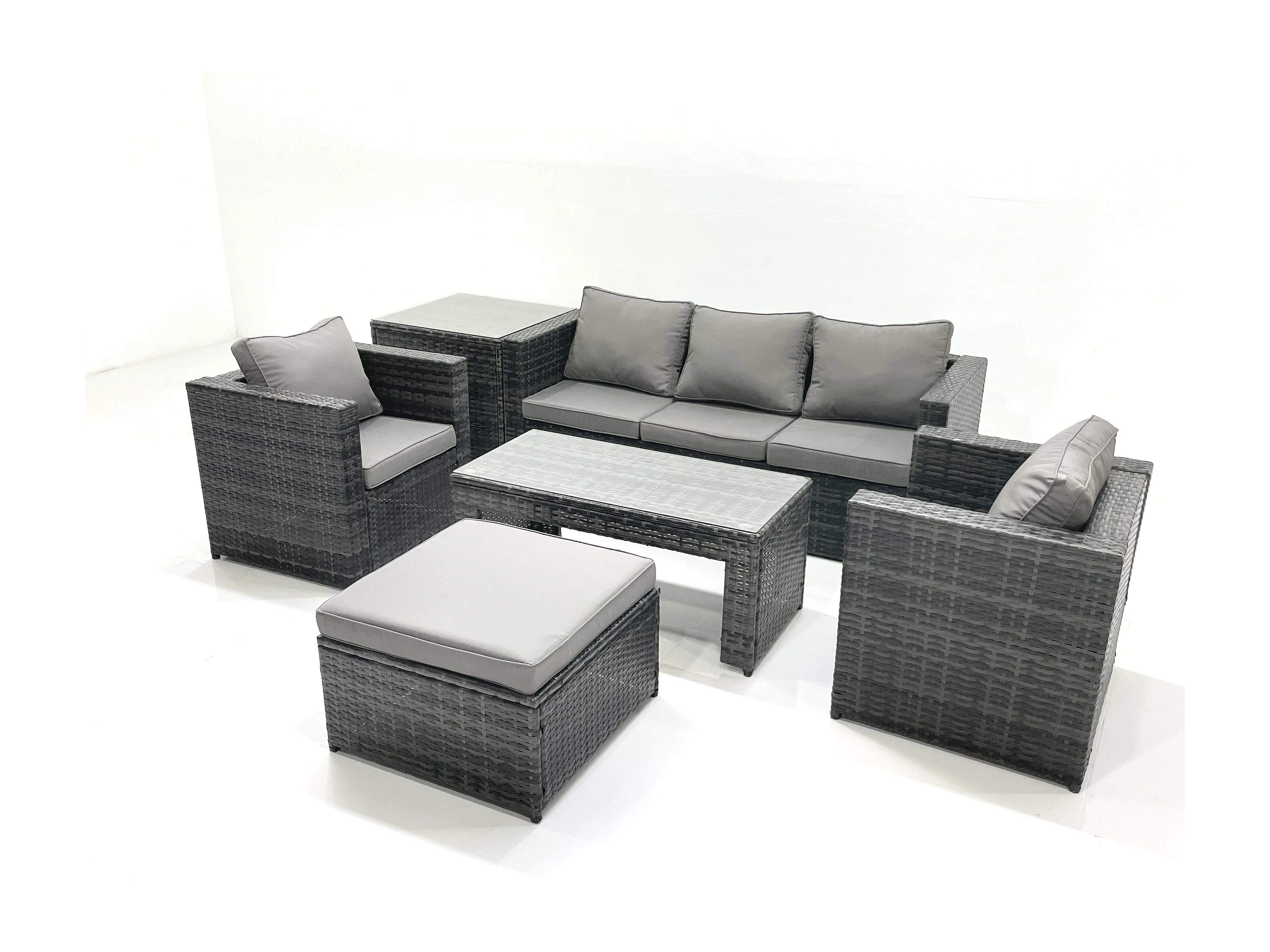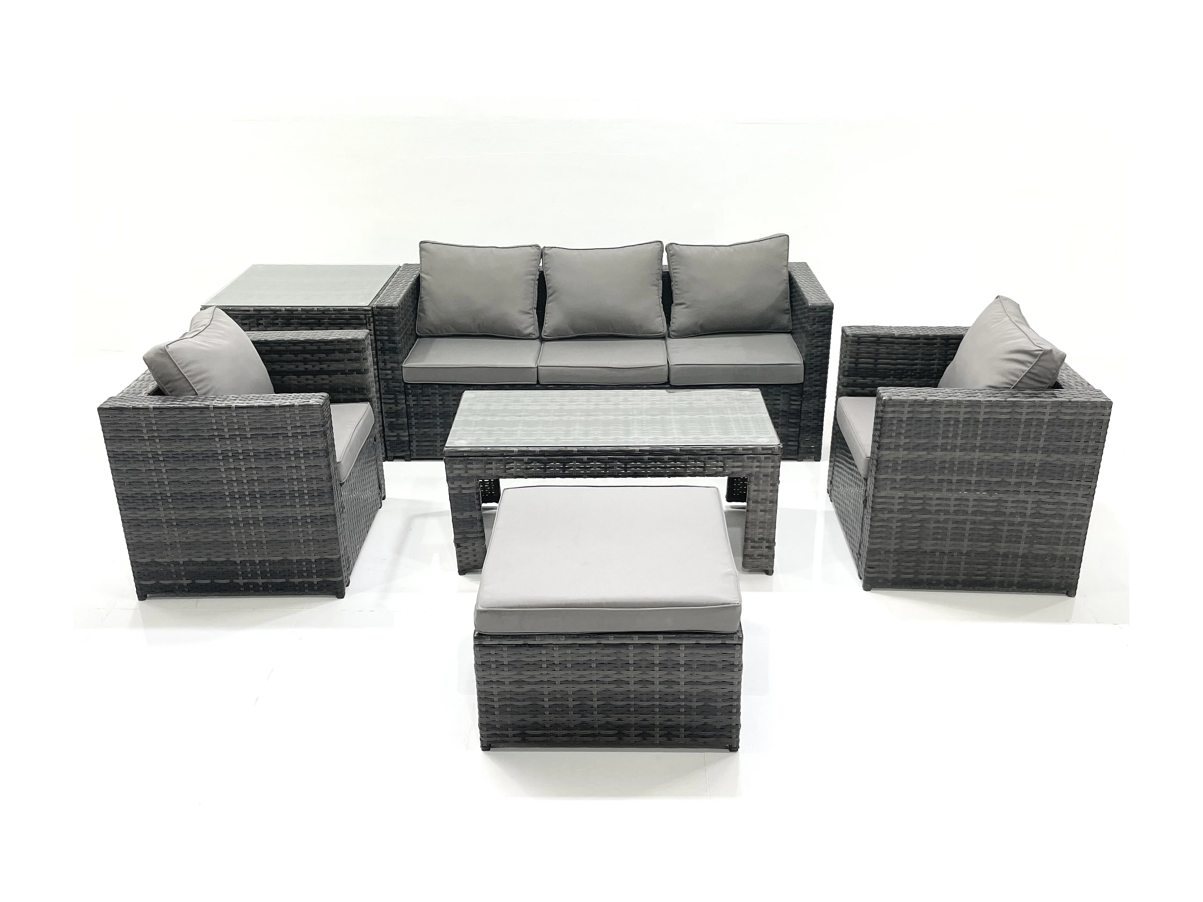 Salon de jardin Ensemble de canapés en rotin avec Table basse 2 Fauteuil Grand tabouret Table d'appoint Gris foncé mixte