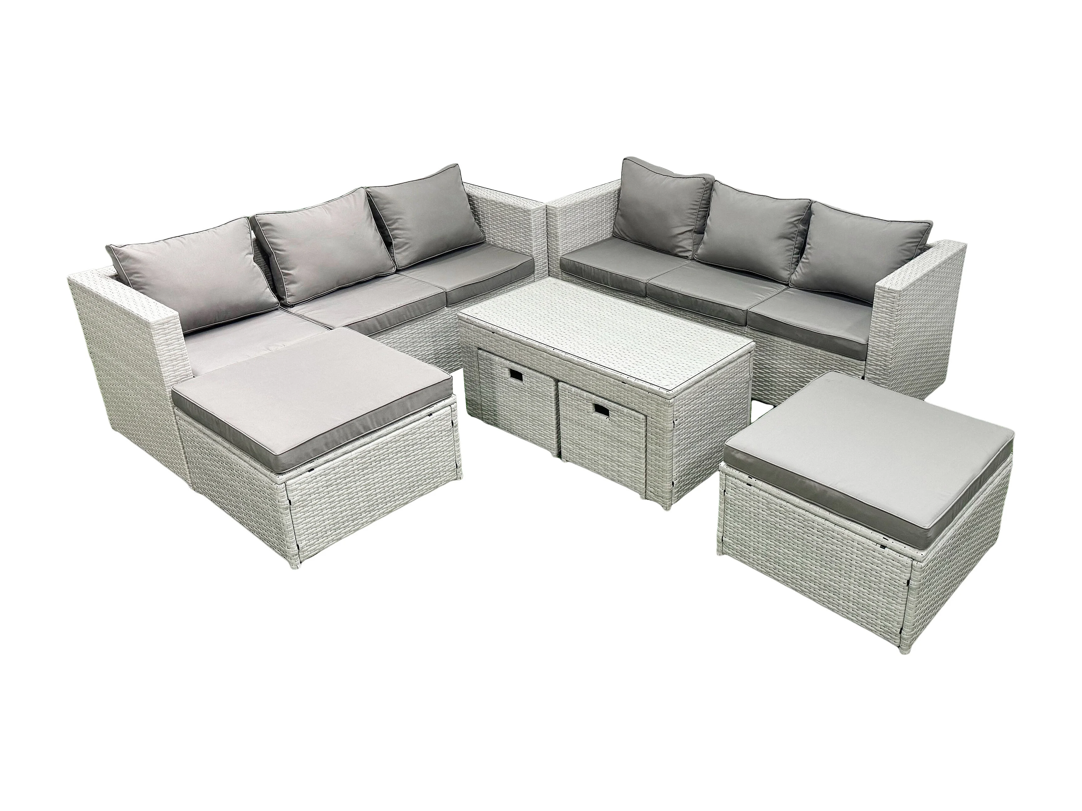 Salon de Jardin Ensemble Ensemble de canapés en rotin avec Table basse 4 Tabourets Gris clair mixte 10 places