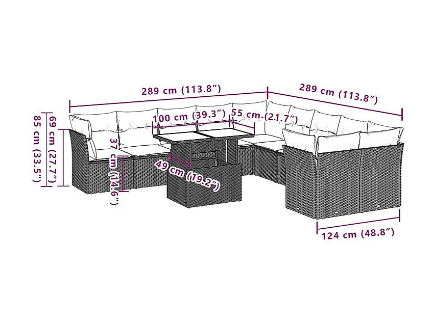 Salon de jardin et coussins 11 pcs marron résine tressée