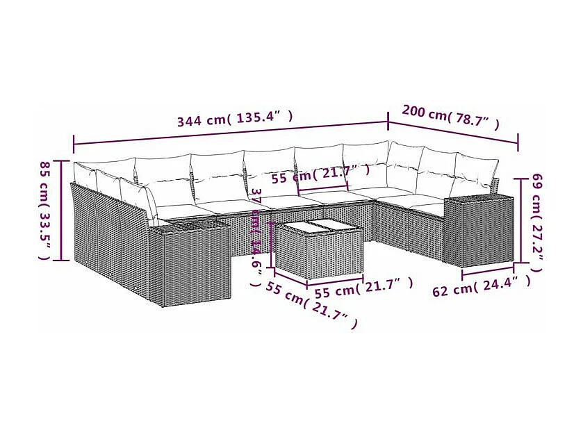 Salon de jardin et coussins 11 pcs marron résine tressée