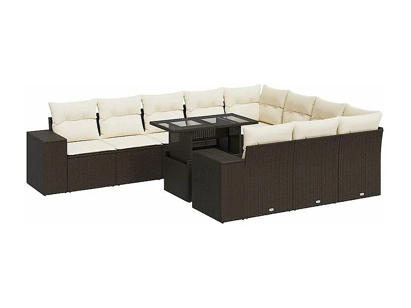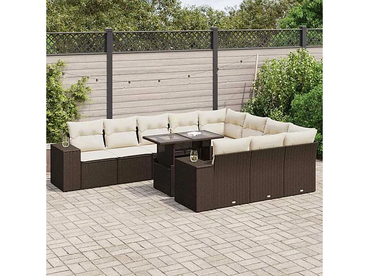 Salon de jardin et coussins 11 pcs marron résine tressée