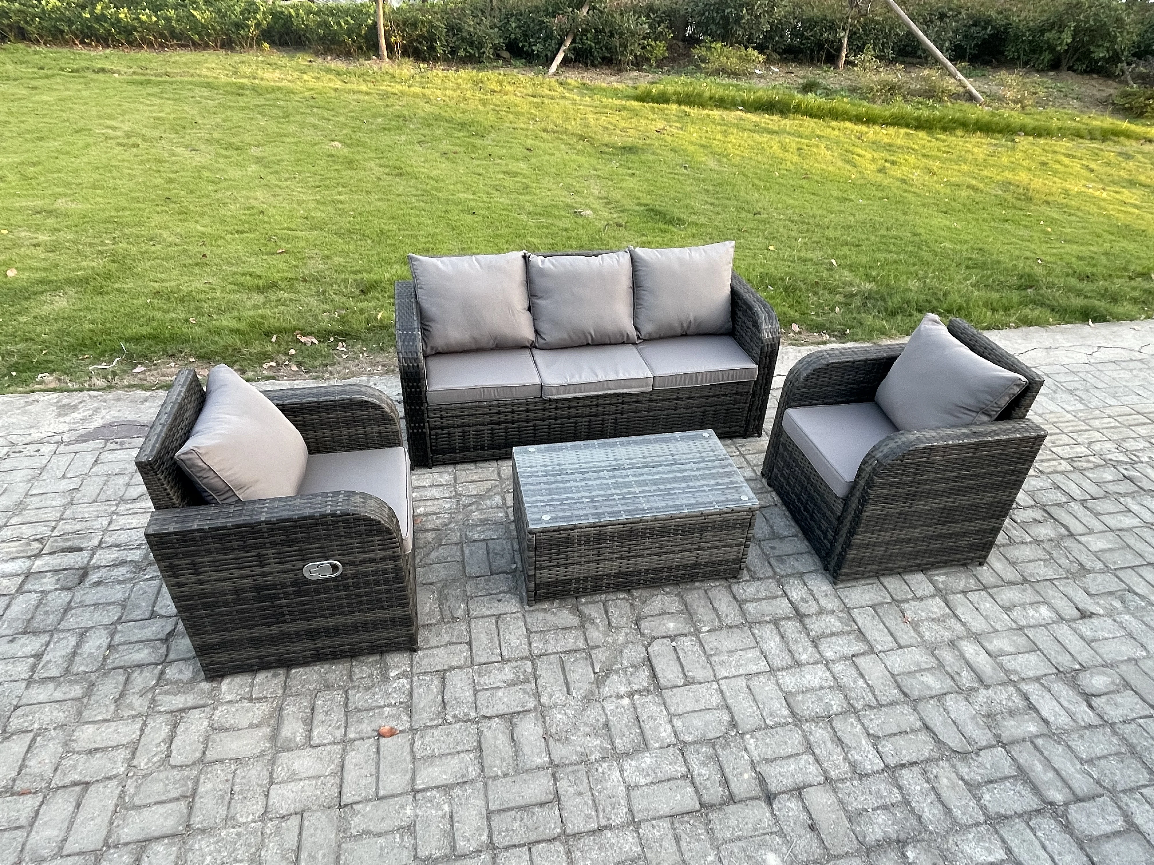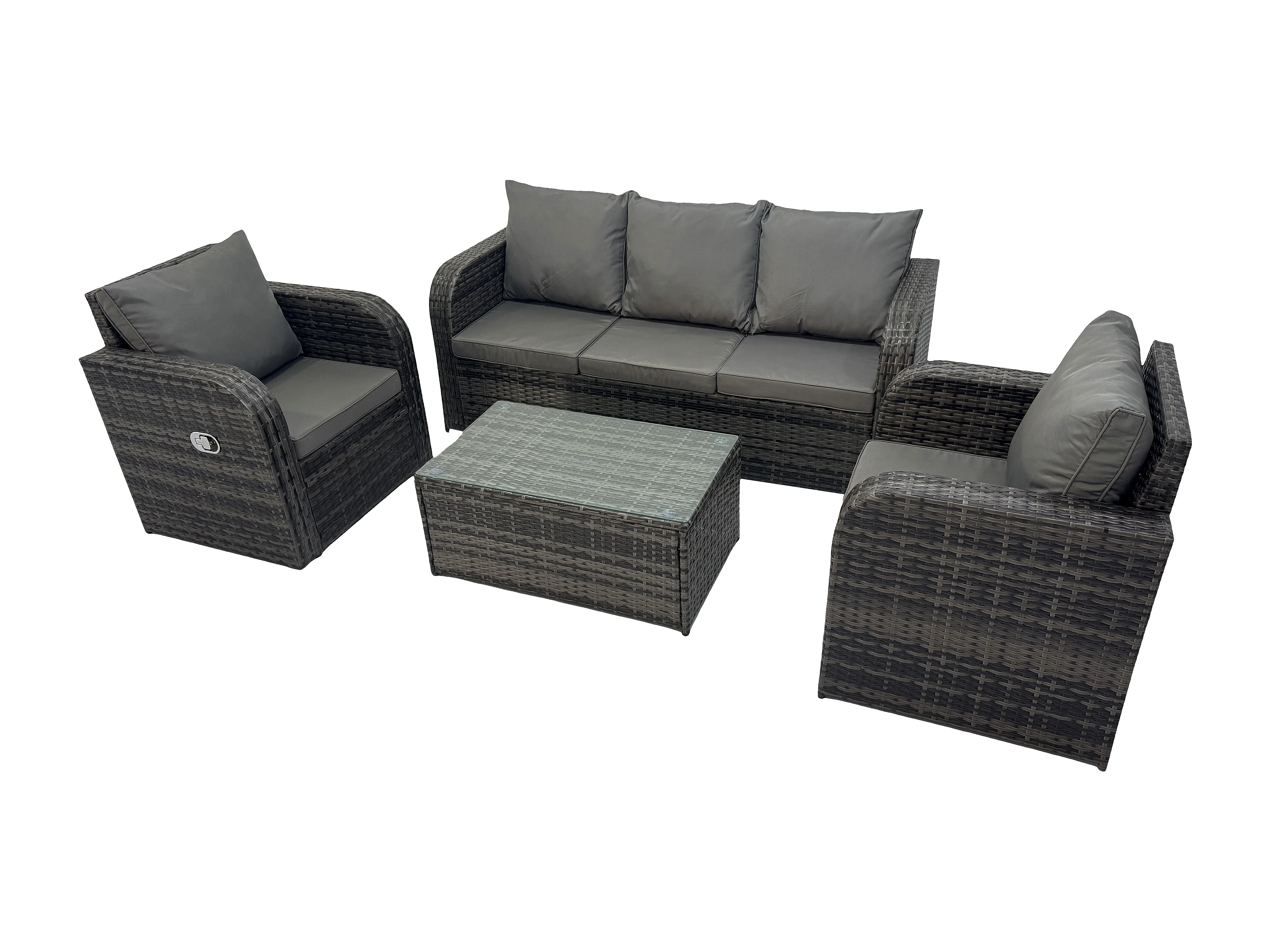 Salon de jardin exterieur 5 places Ensemble de canapés en rotin avec Table basse rectangulaire Gris foncé mixte