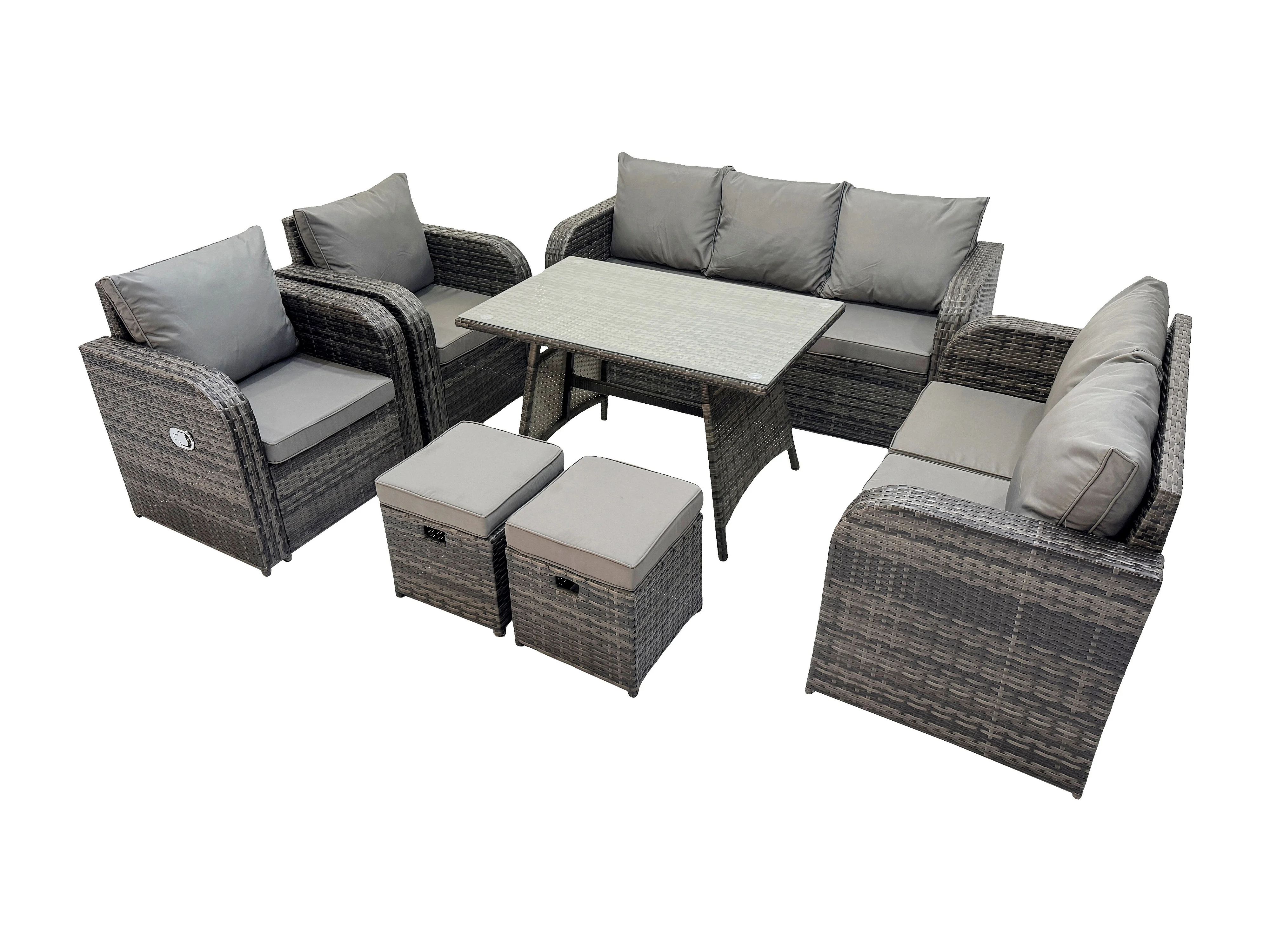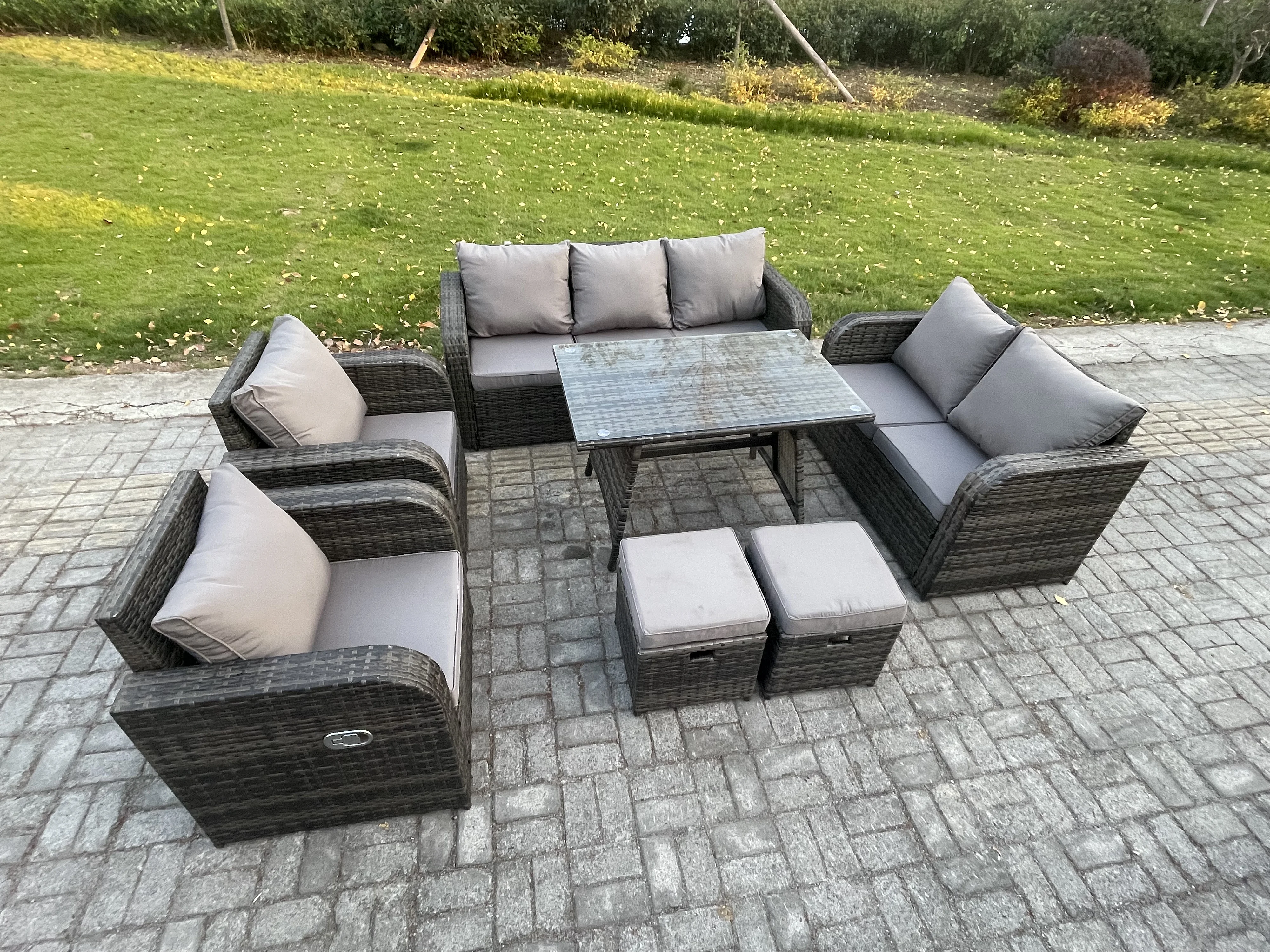 Salon de jardin exterieur 9 places Ensemble de canapés en rotin avec Table à manger 2 Petits tabourets Gris foncé mixte