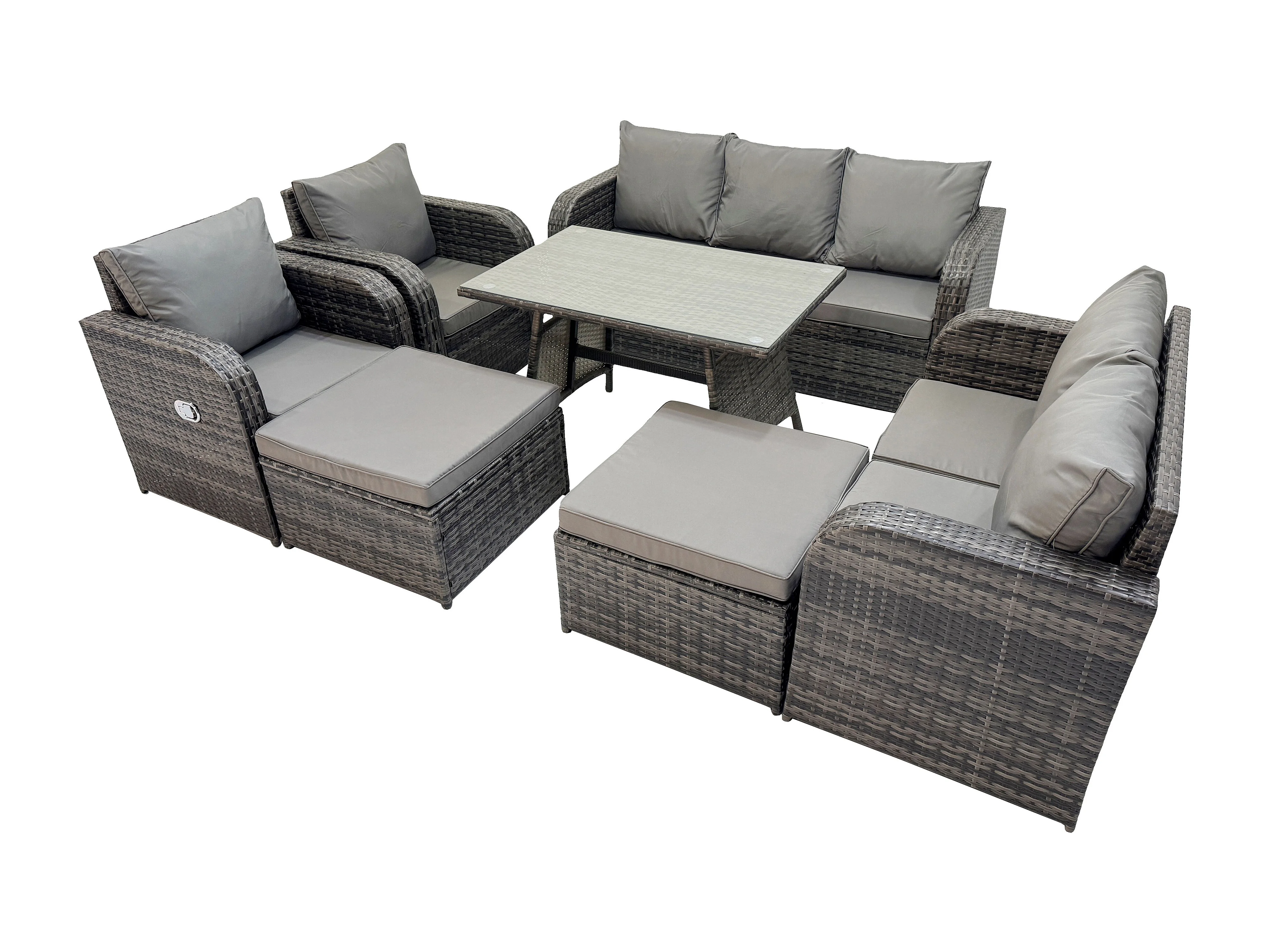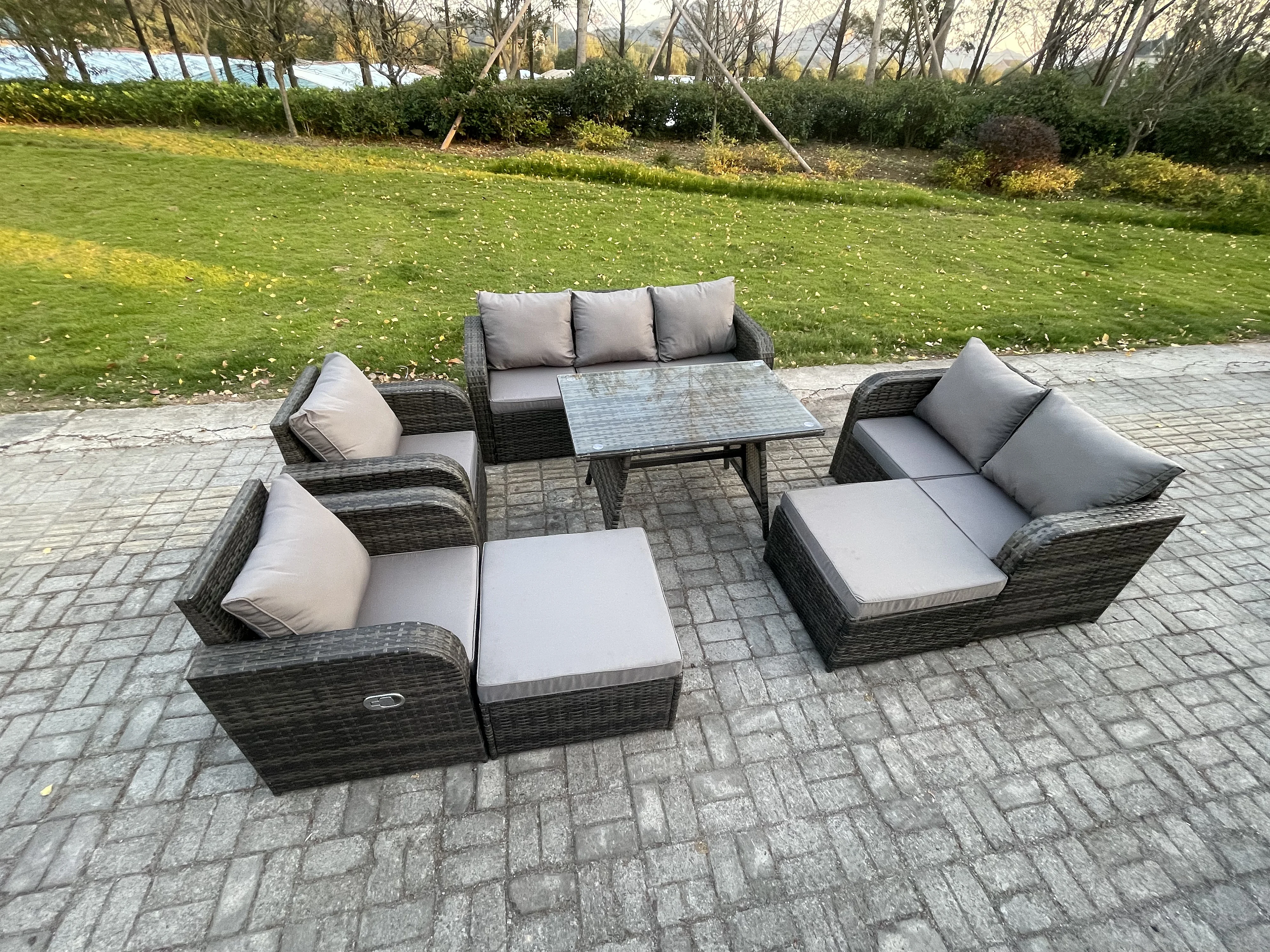 Salon de jardin exterieur 9 places Table à manger rectangulaire 2 Grand tabourets Canapé d'amour Gris foncé mixte