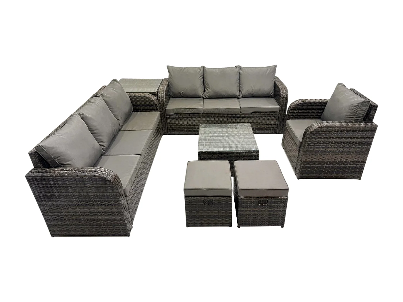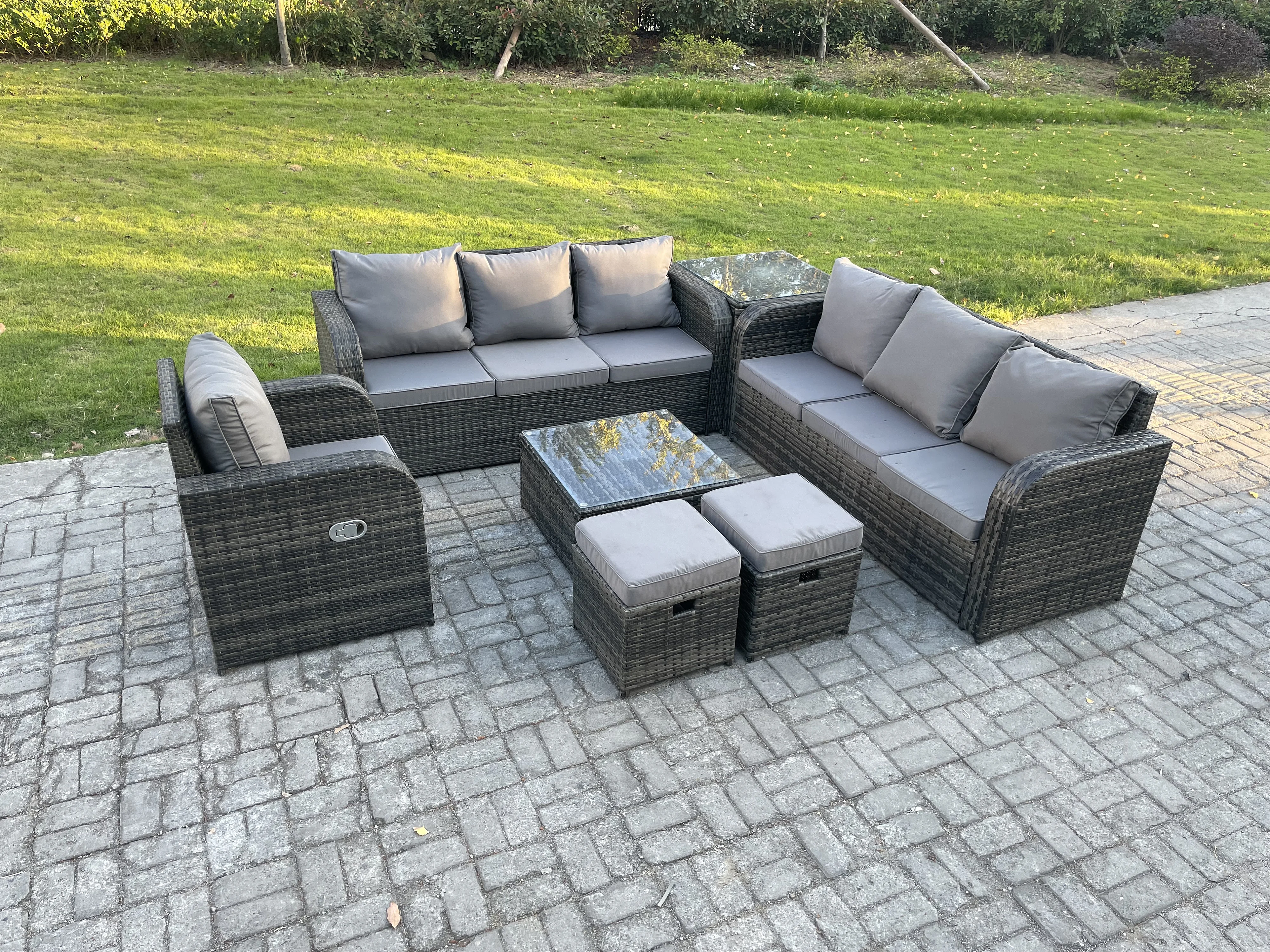 Salon de jardin exterieur avec Canapés Table basse carrée Chaise inclinable Table d'appoint 2 Petits tabourets Gris foncé mixte