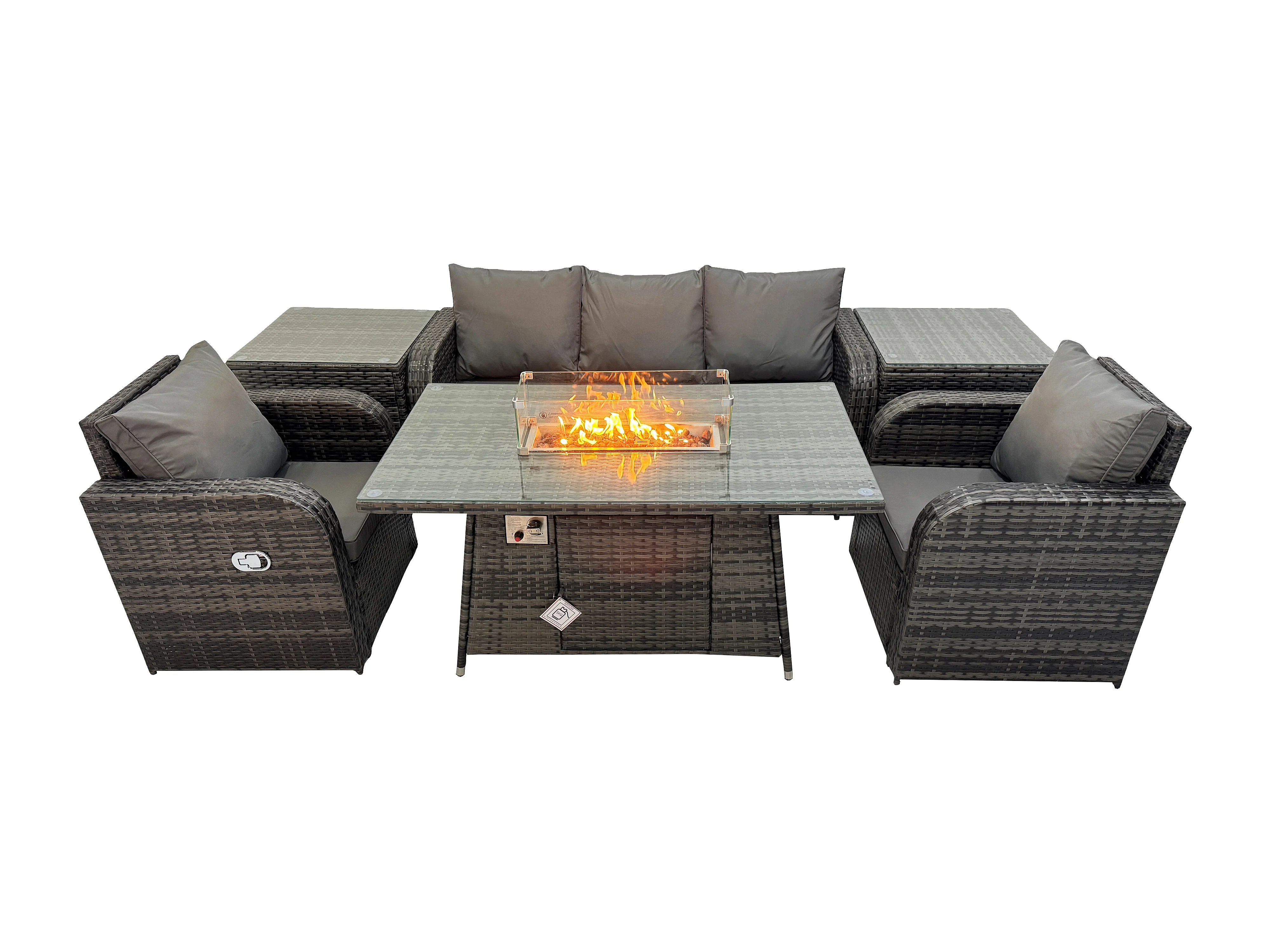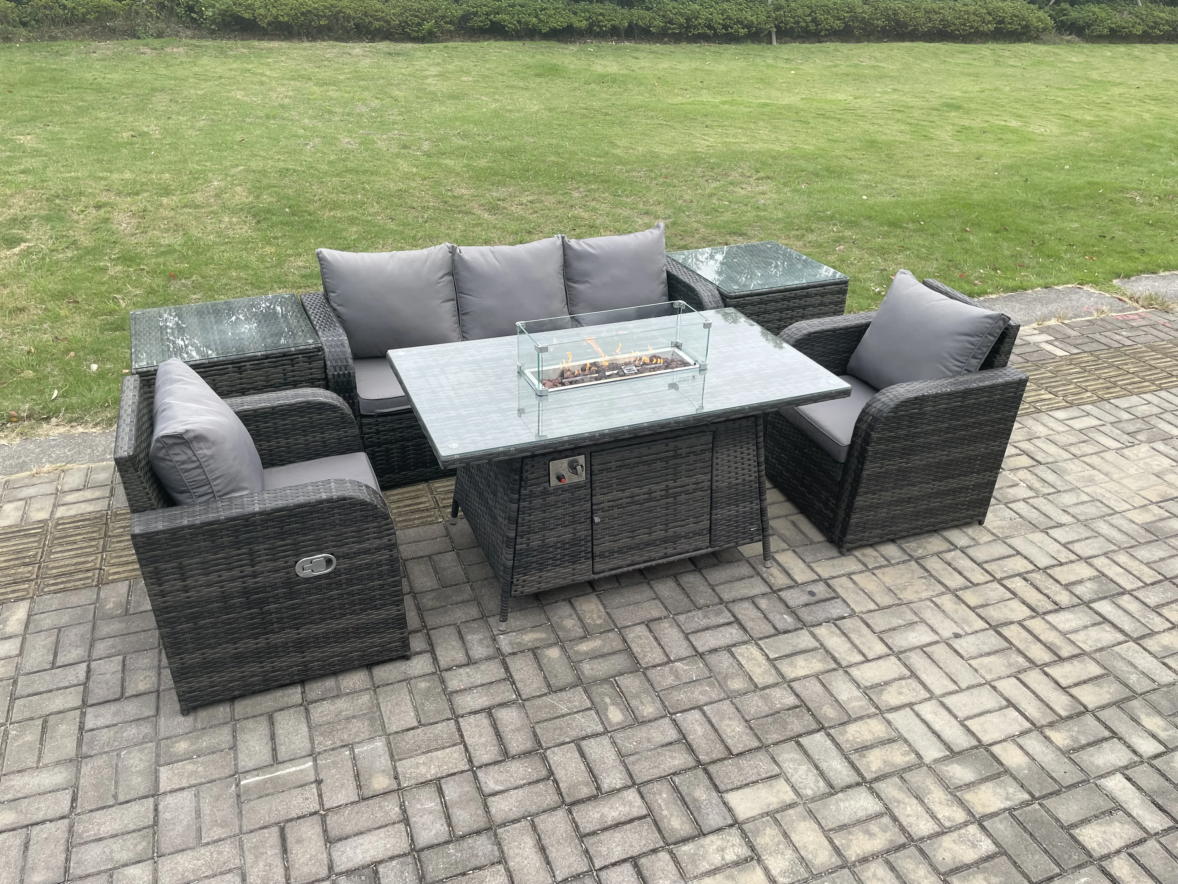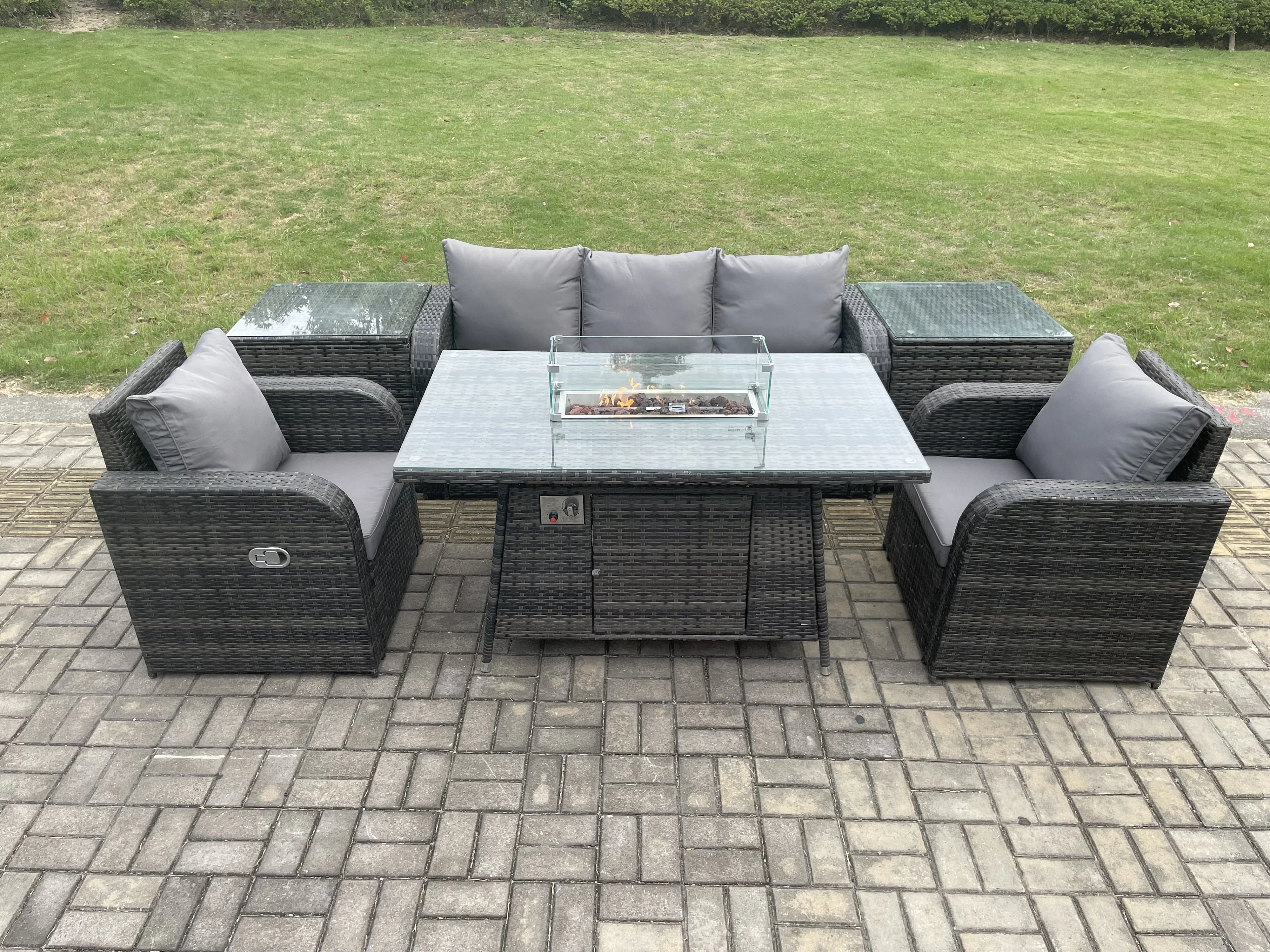 Salon de jardin exterieur Table de foyer à gaz avec Canapé Lounge 2 Tables d'appoint