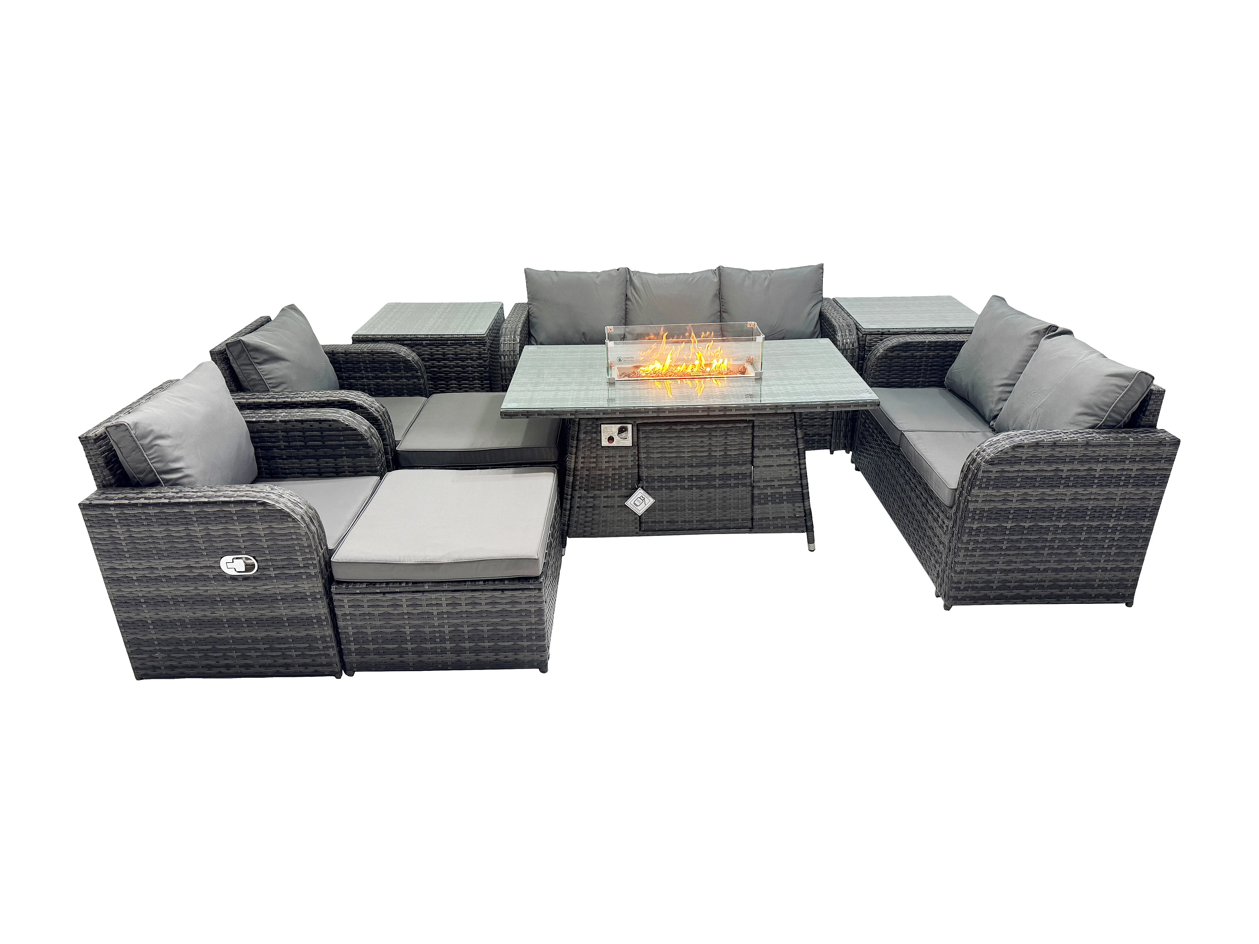 Salon de jardin exterieur Table de foyer à gaz et Canapé Fauteuil avec 2 Tables d'appoint 2 Grand tabourets