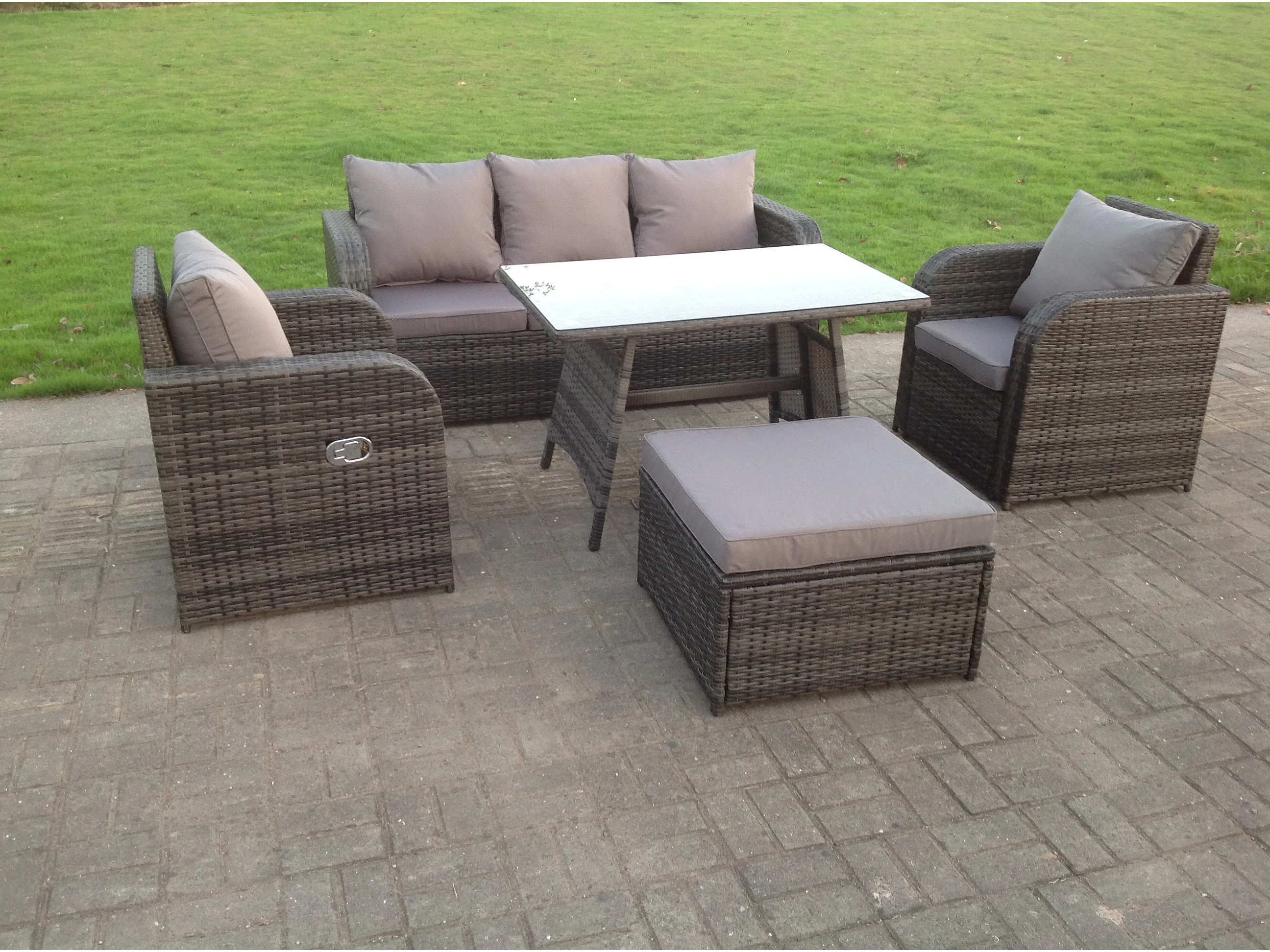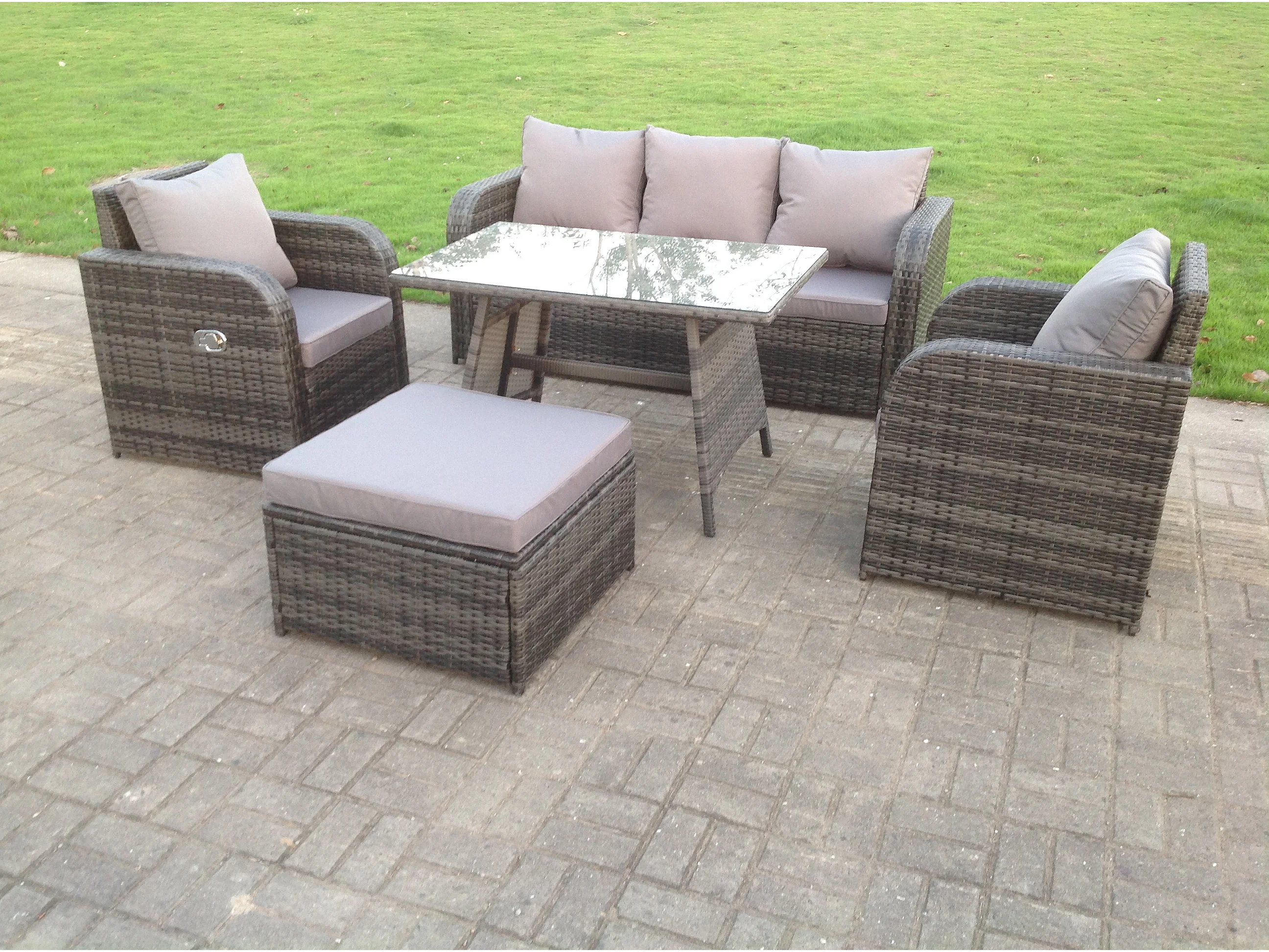 Salon de jardin Fauteuil Canapé Lounge Canapé 3 places Table à manger oblongue rectangulaire Tabouret