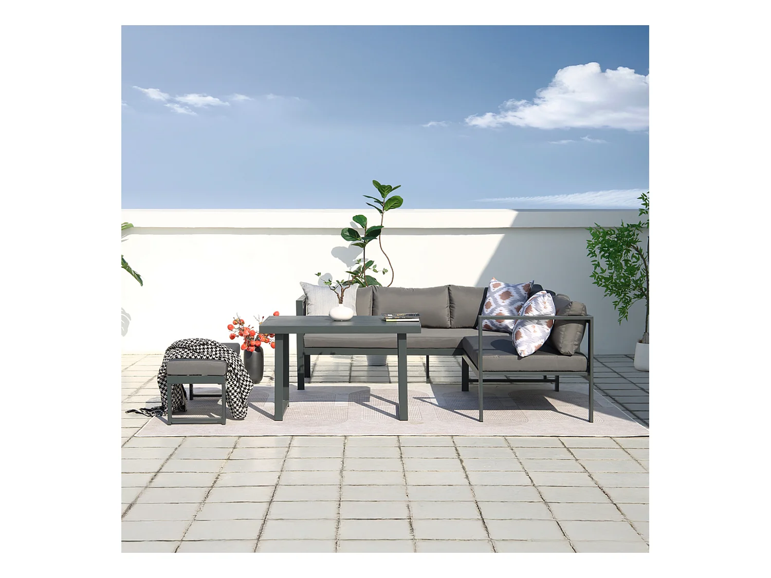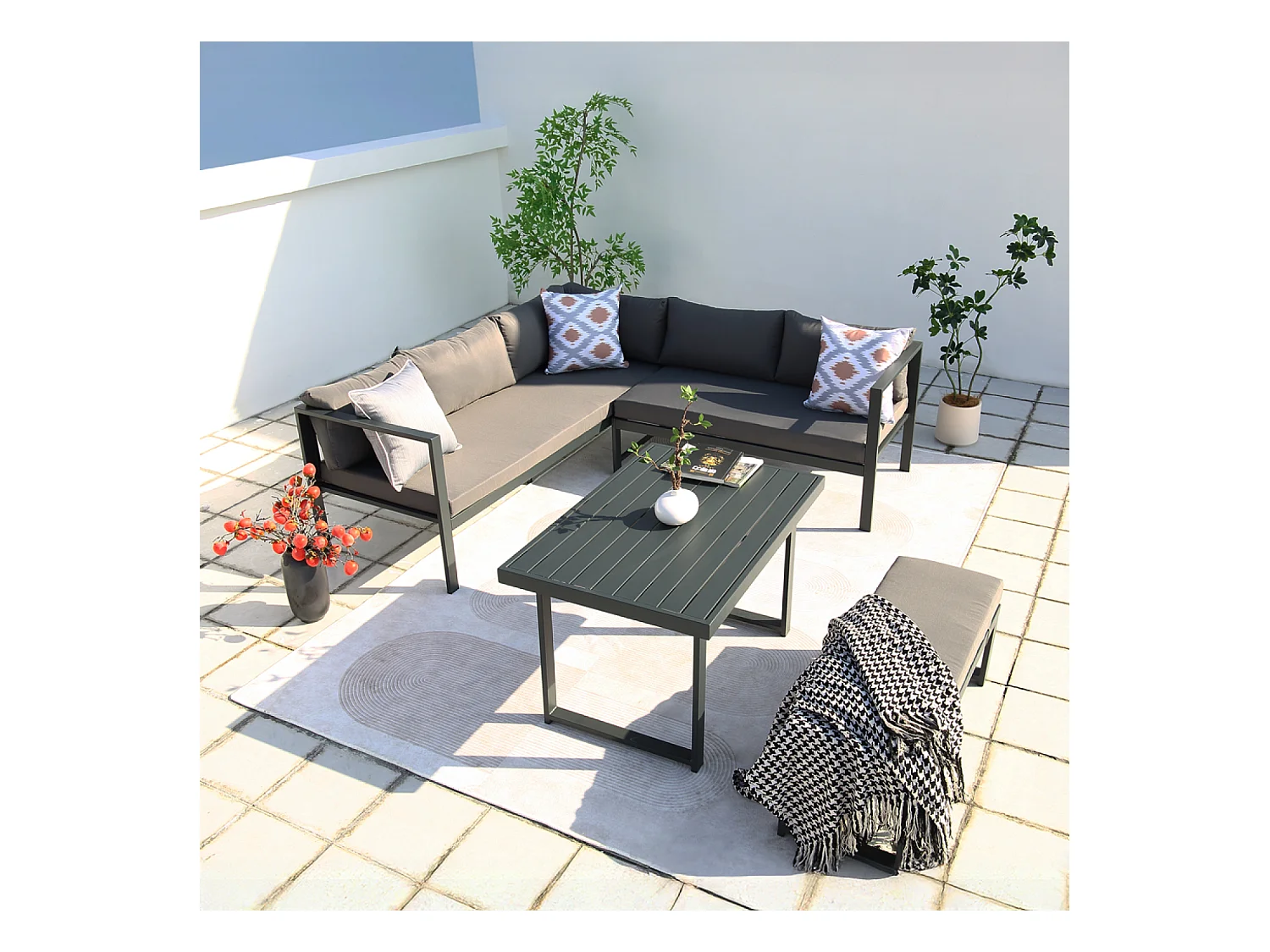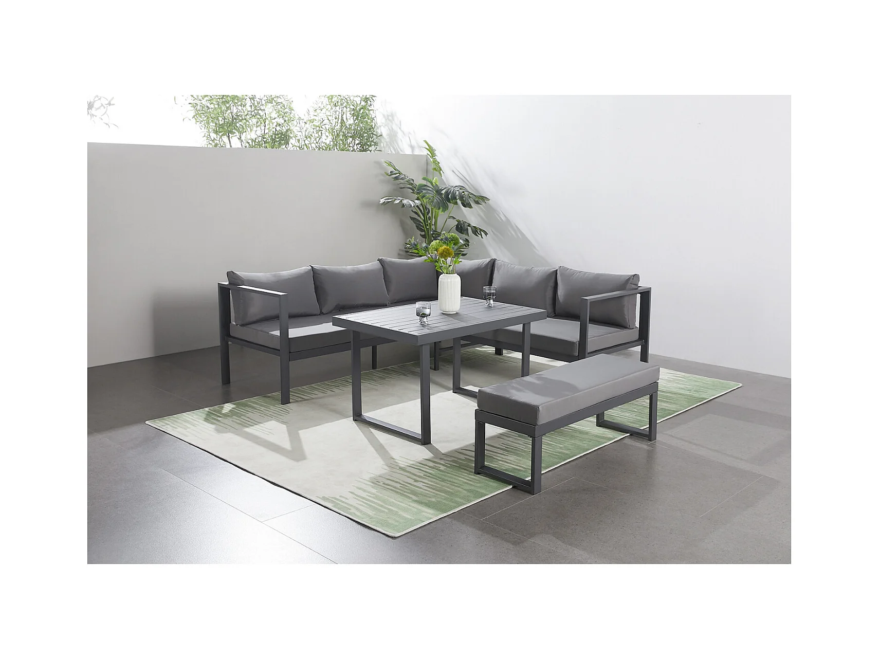salon de jardin panoramique 8 places en résine tressée noir et gris MARBELLA