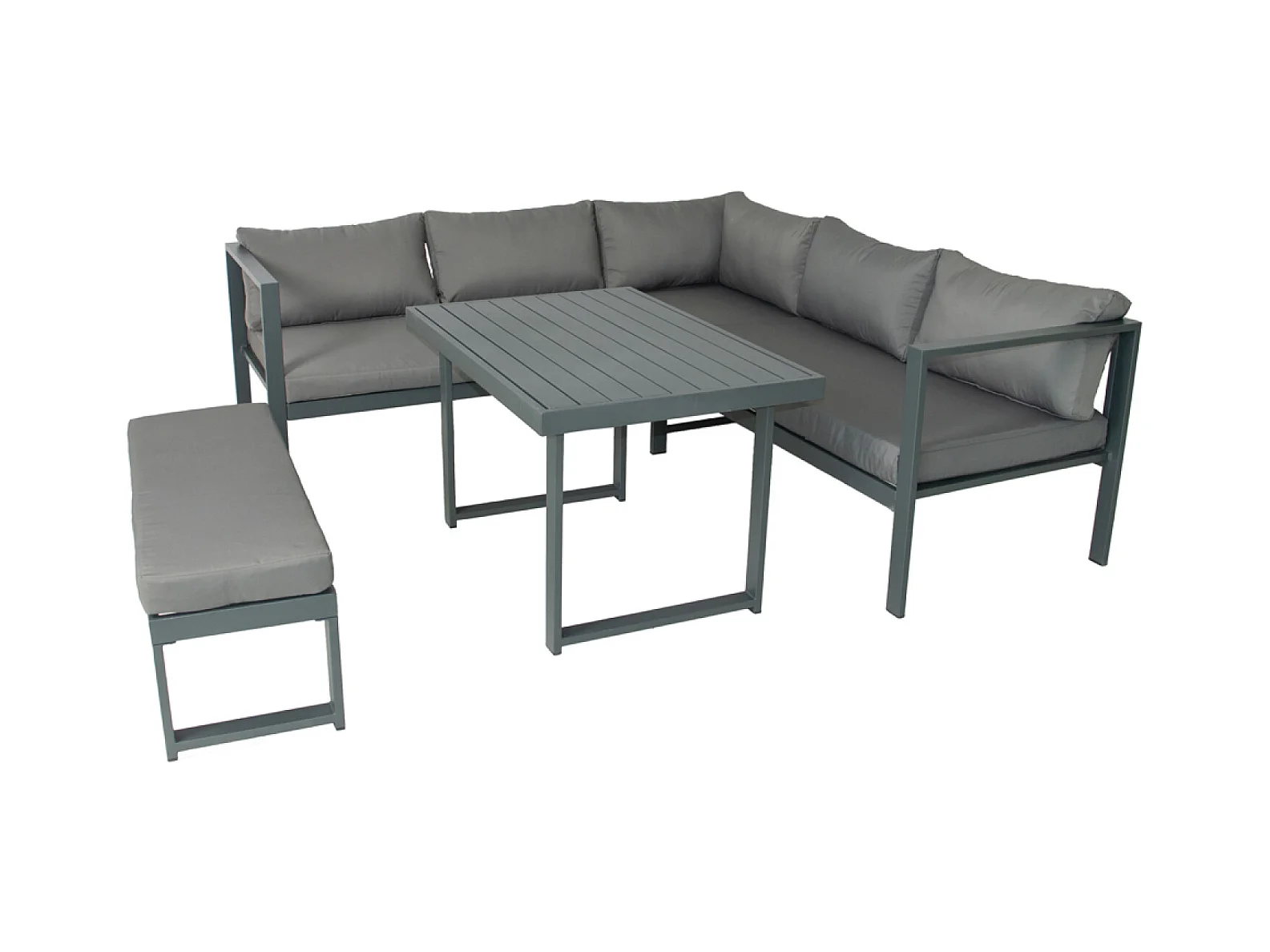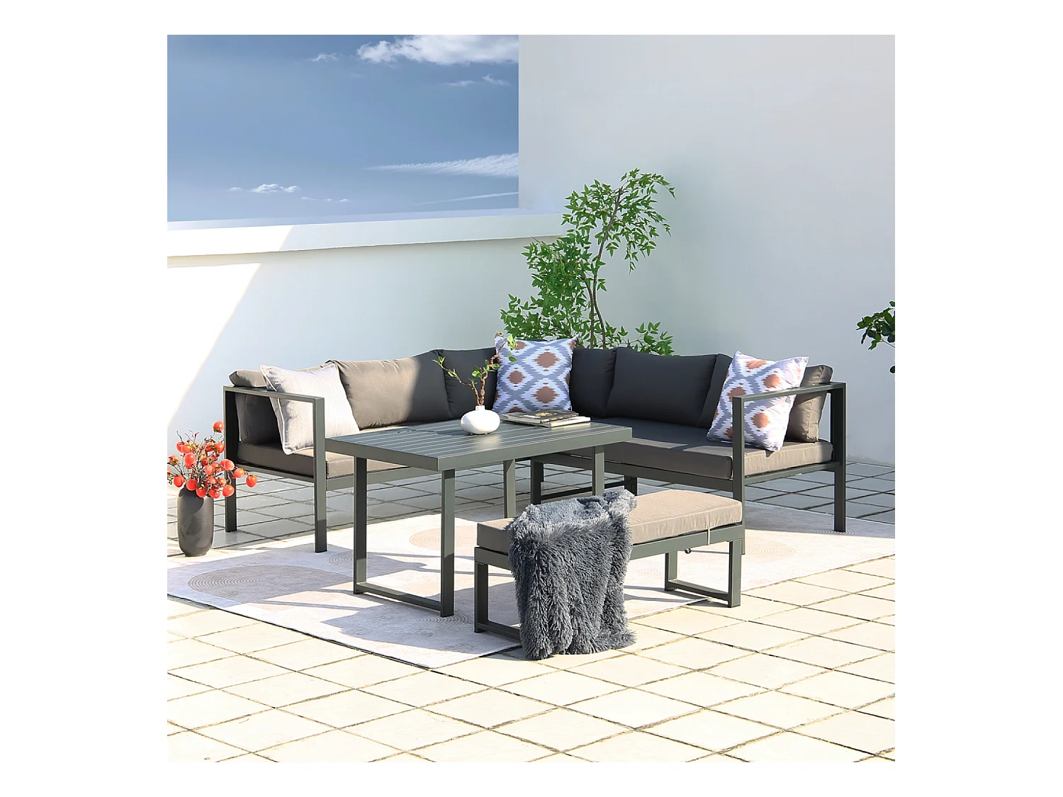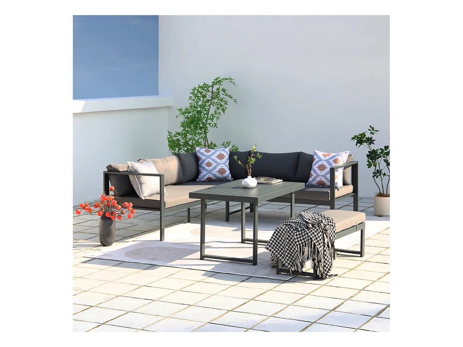 salon de jardin panoramique 8 places en résine tressée noir et gris MARBELLA